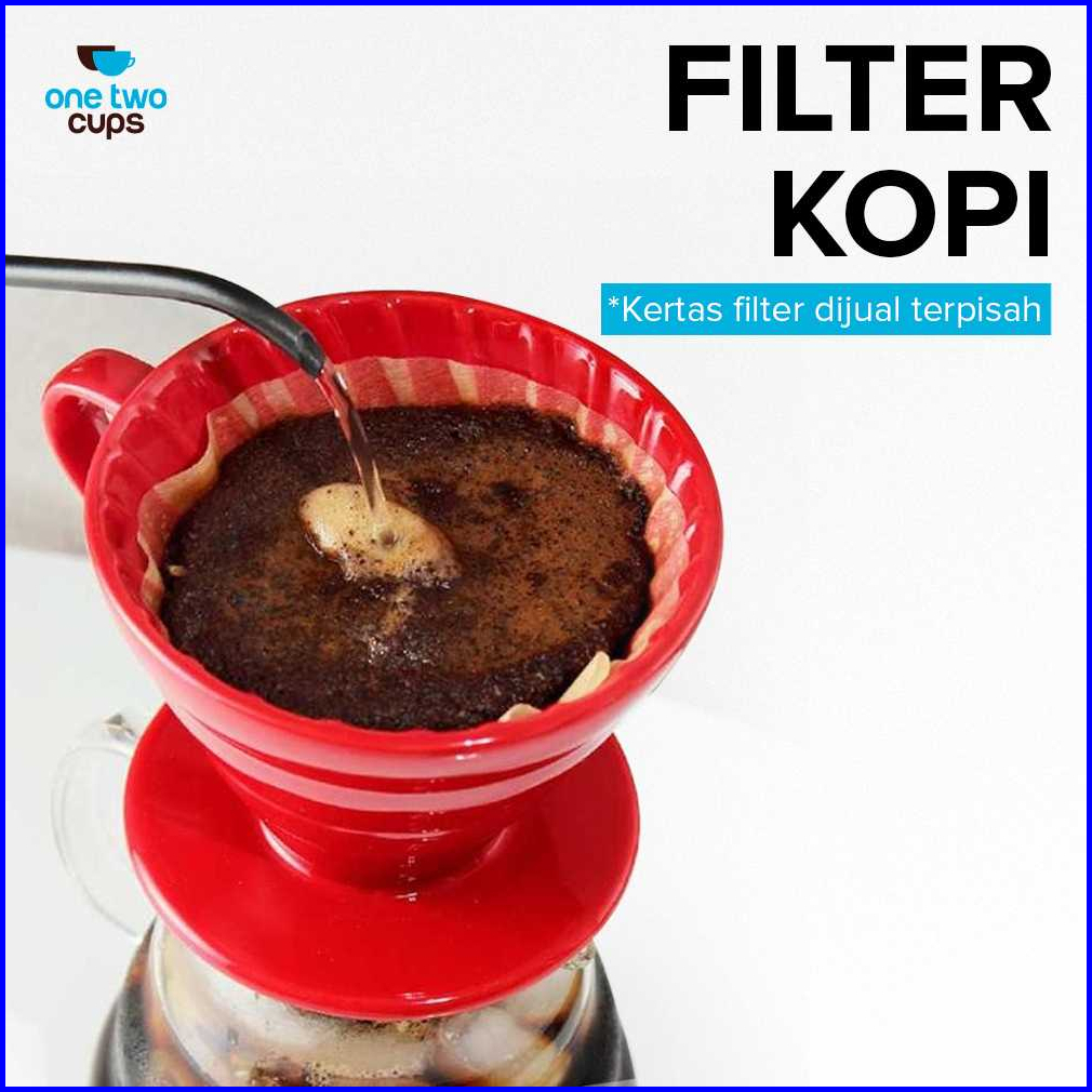 One Two Cups Filter Penyaring Kopi V60 Glass Coffee Filter Dripper - Zm00639 - Merah