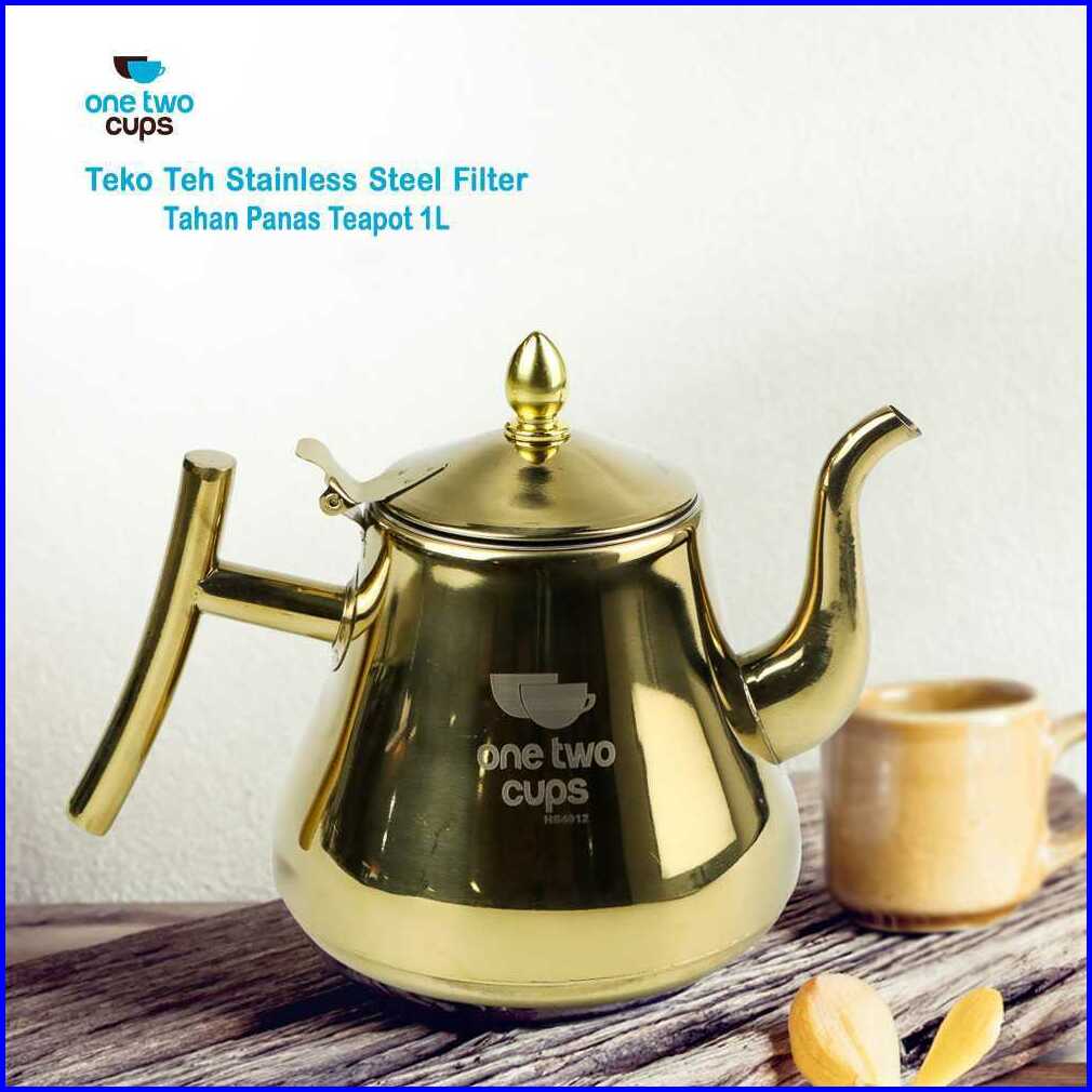 One Two Cups Teko Teh Teapot 1l Stainless Steel Dengan Filter Hs4012