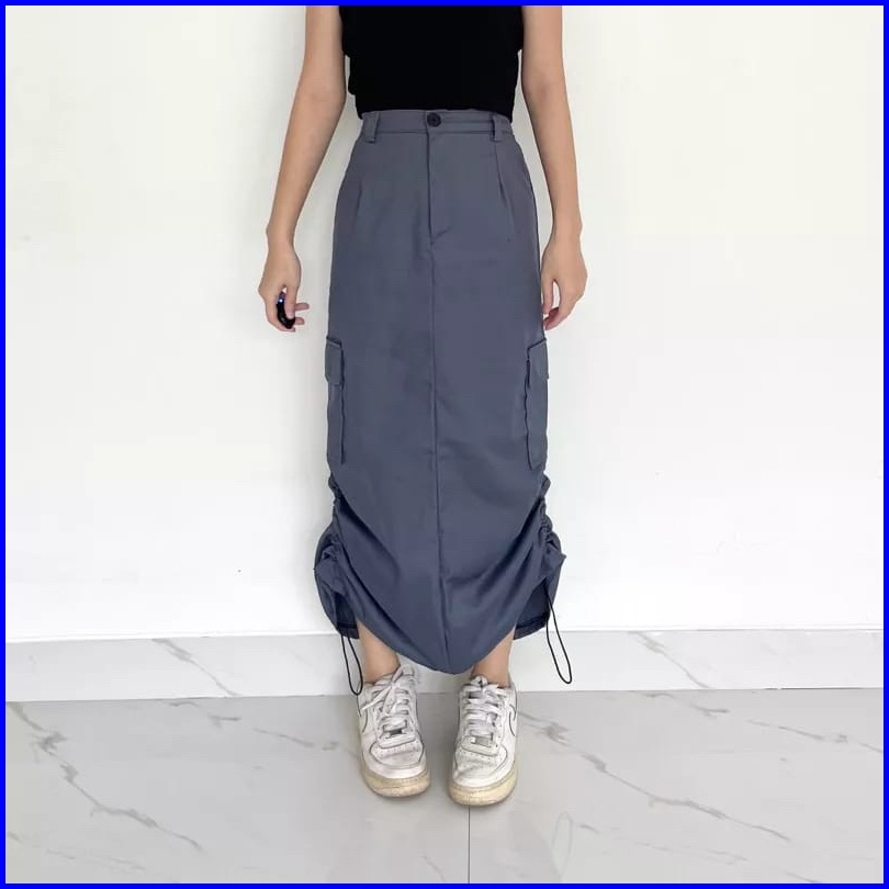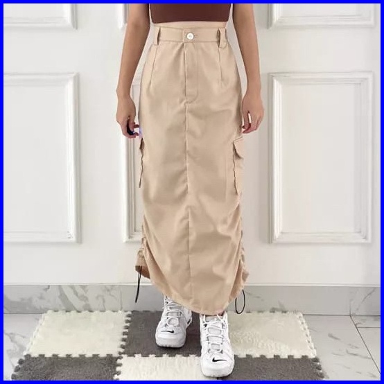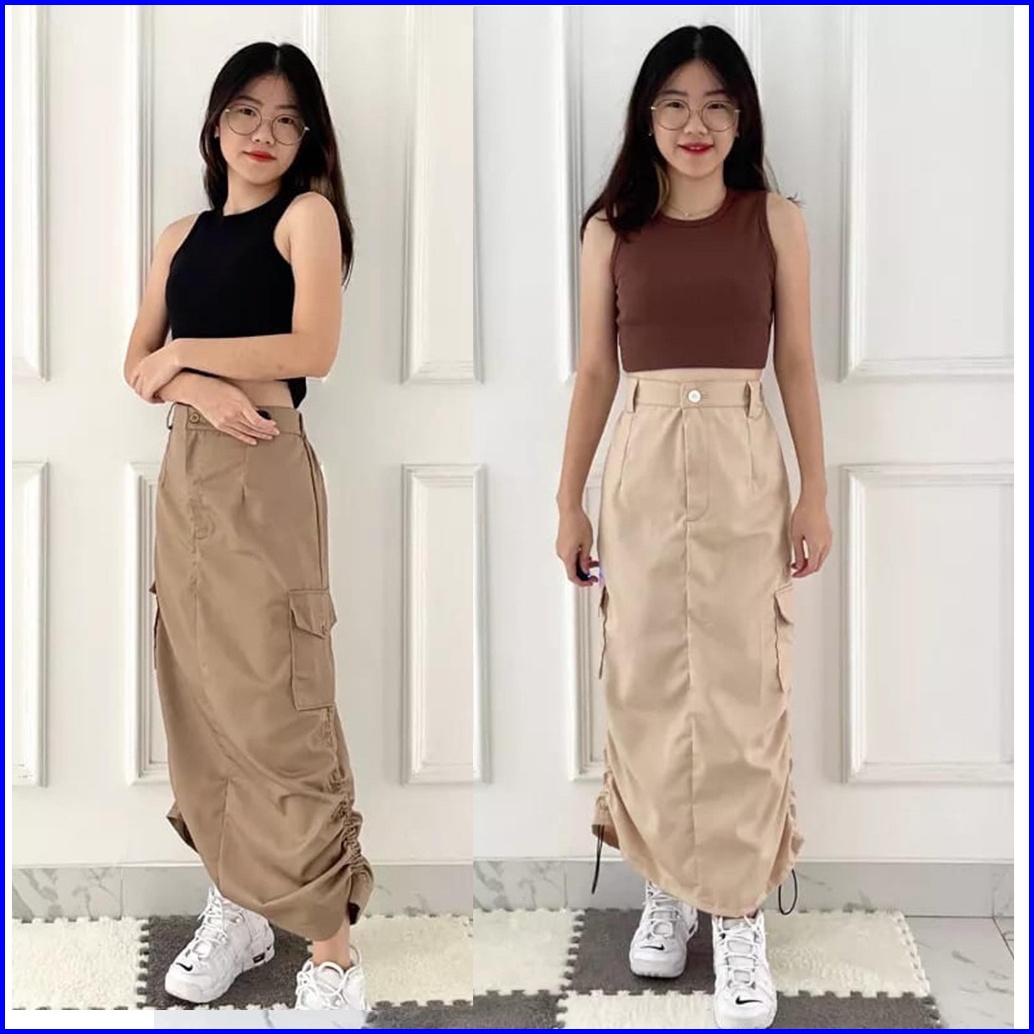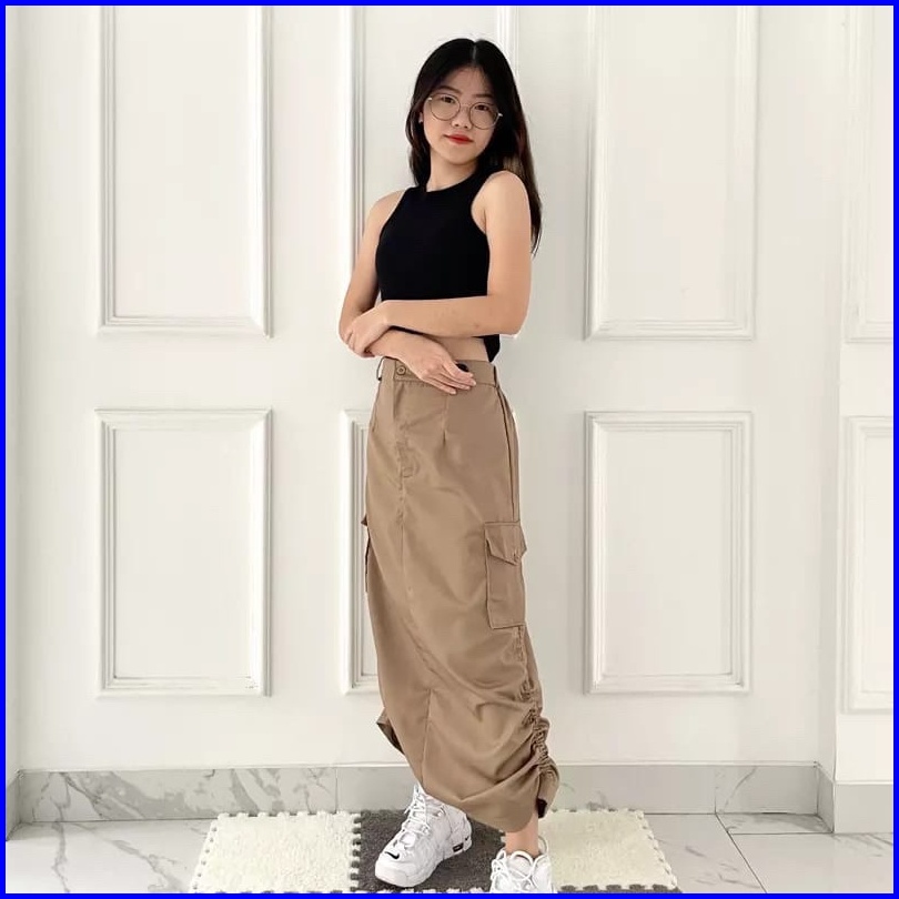 Hargarakyat - Harga Rakyat Rok Cargo - Cargo Skirt Wanita - Alexa Rok Cargo Korean Style Skirt Twill Strecth