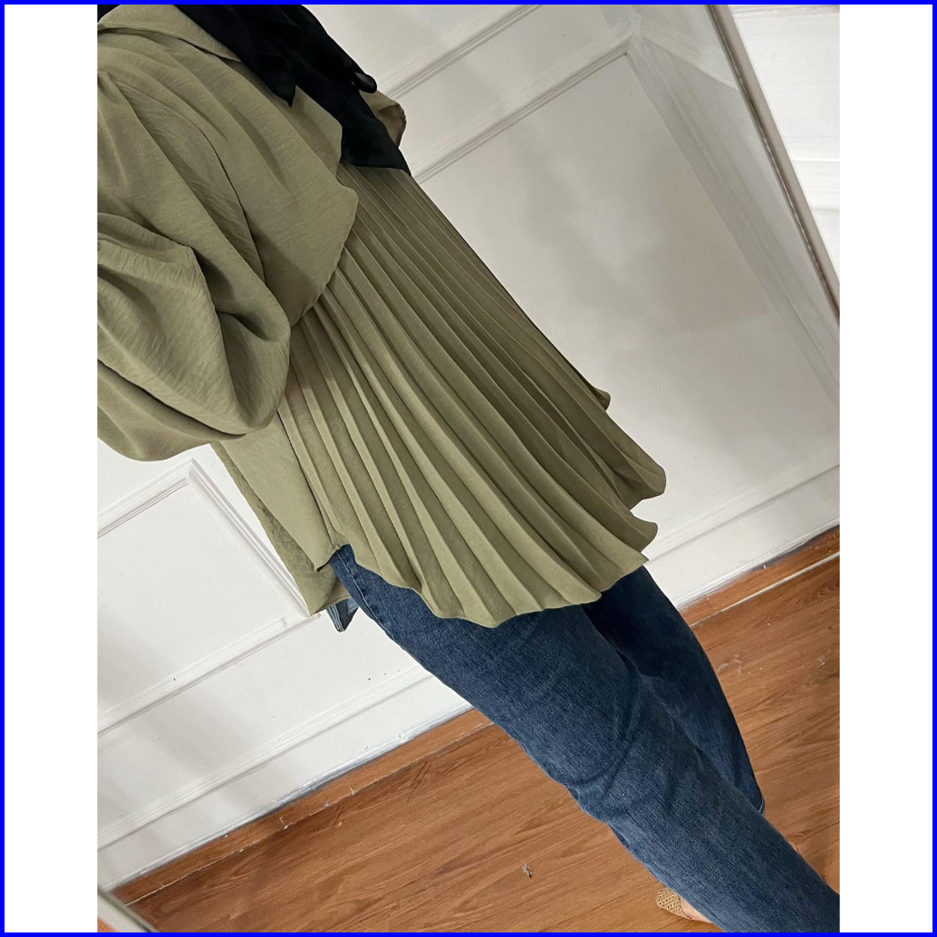 Joana Kemeja Crincle Wanita Lengan Balon Variasi Plisket