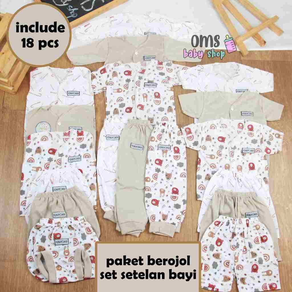 18PCS!! Paket Lahiran Bayi Set Setelan Baju Bayi New Born / Paket Berojol Set / Setelan Anak Bayi Full Print / PAKET NEW