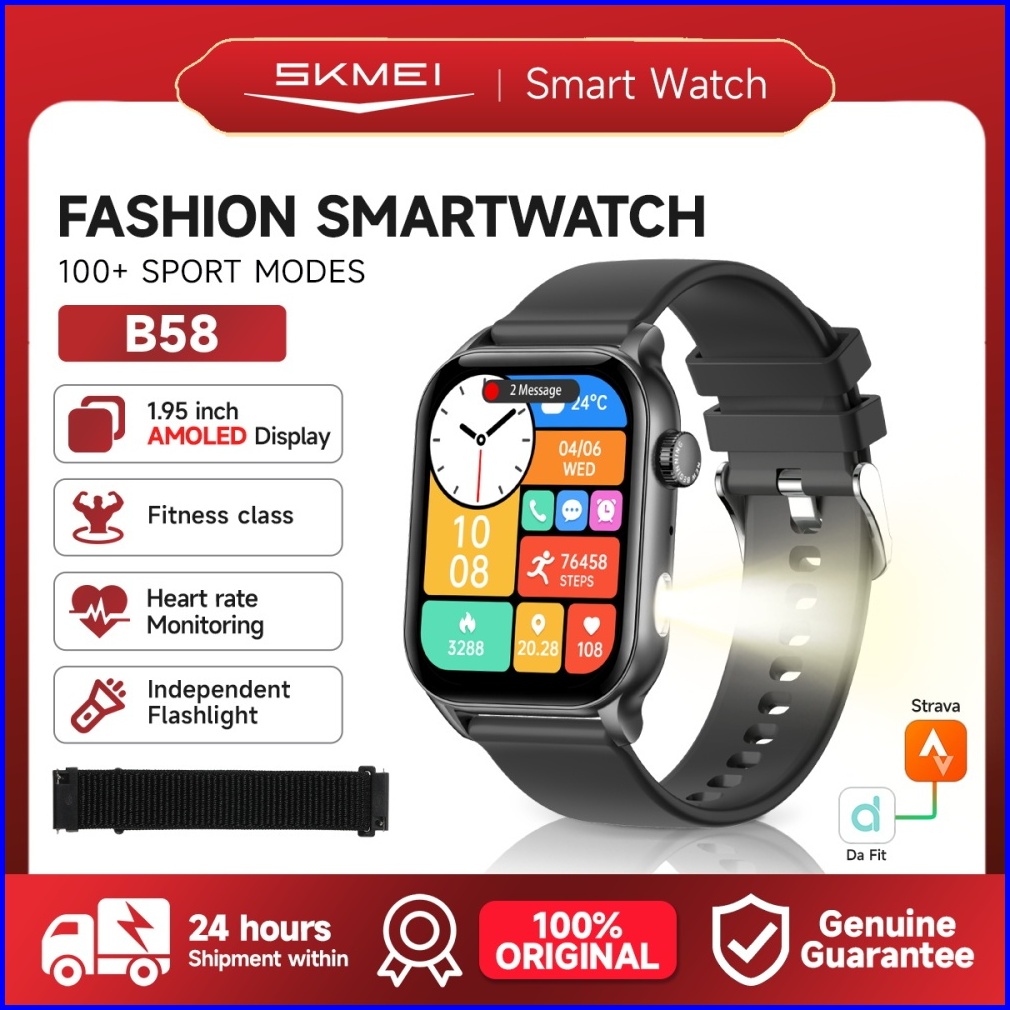 Skmei B58 Smartwatch Wanita Pria Amoled Full Touch Screen Sports Fitness Tracker Jam Tangan Wanita Anti Casual Tipis Jam