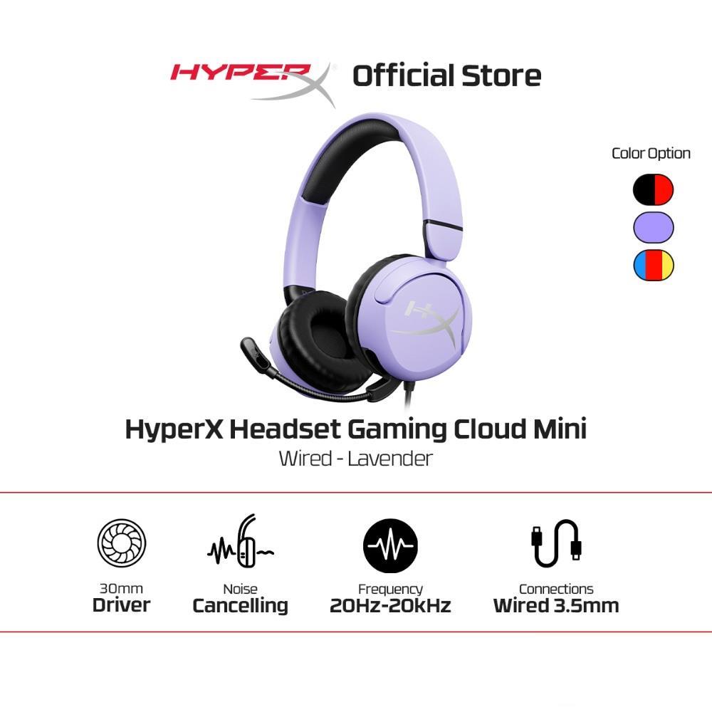 HyperX Headset Gaming Cloud Mini - Black / Lavender / Multi-Color Wired Noise Cancelling Leather Stereo