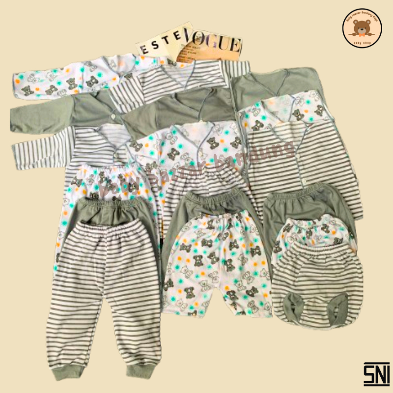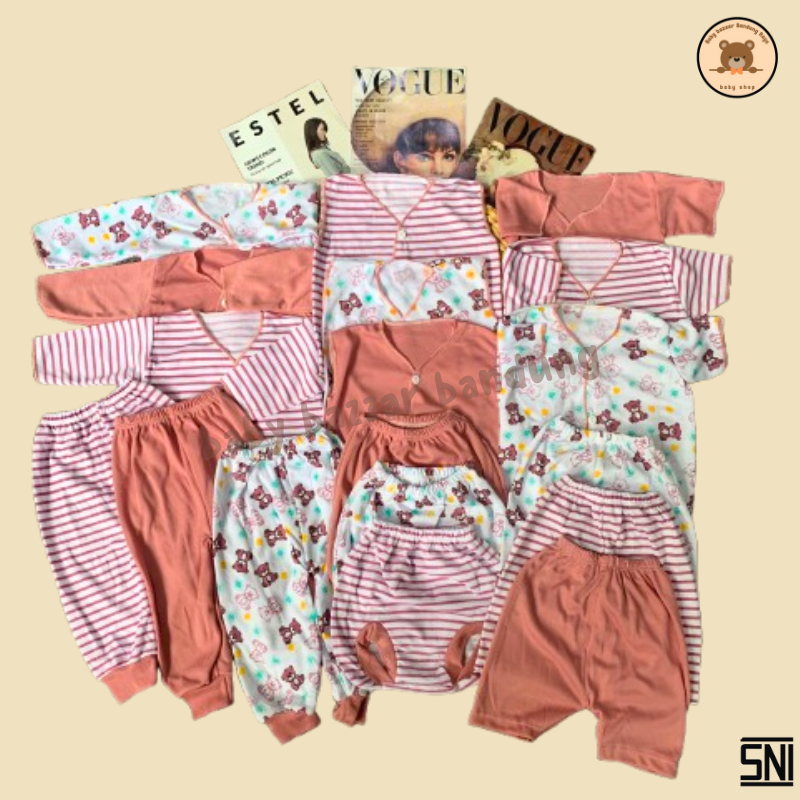 Baby Bazzar Paket Lengkap New Born Baju Dan Celana Bayi 36 PCS Seri Beruang Rusa Coklat [FREE BANTAL BAYI Khusus 30PCS S