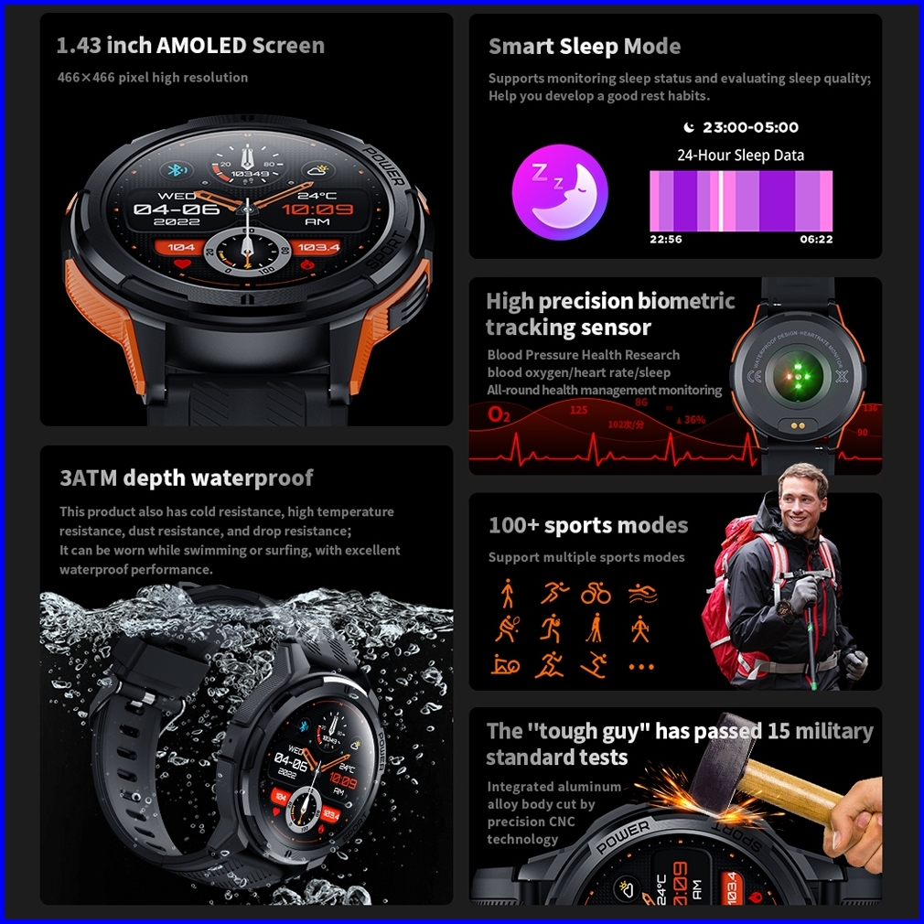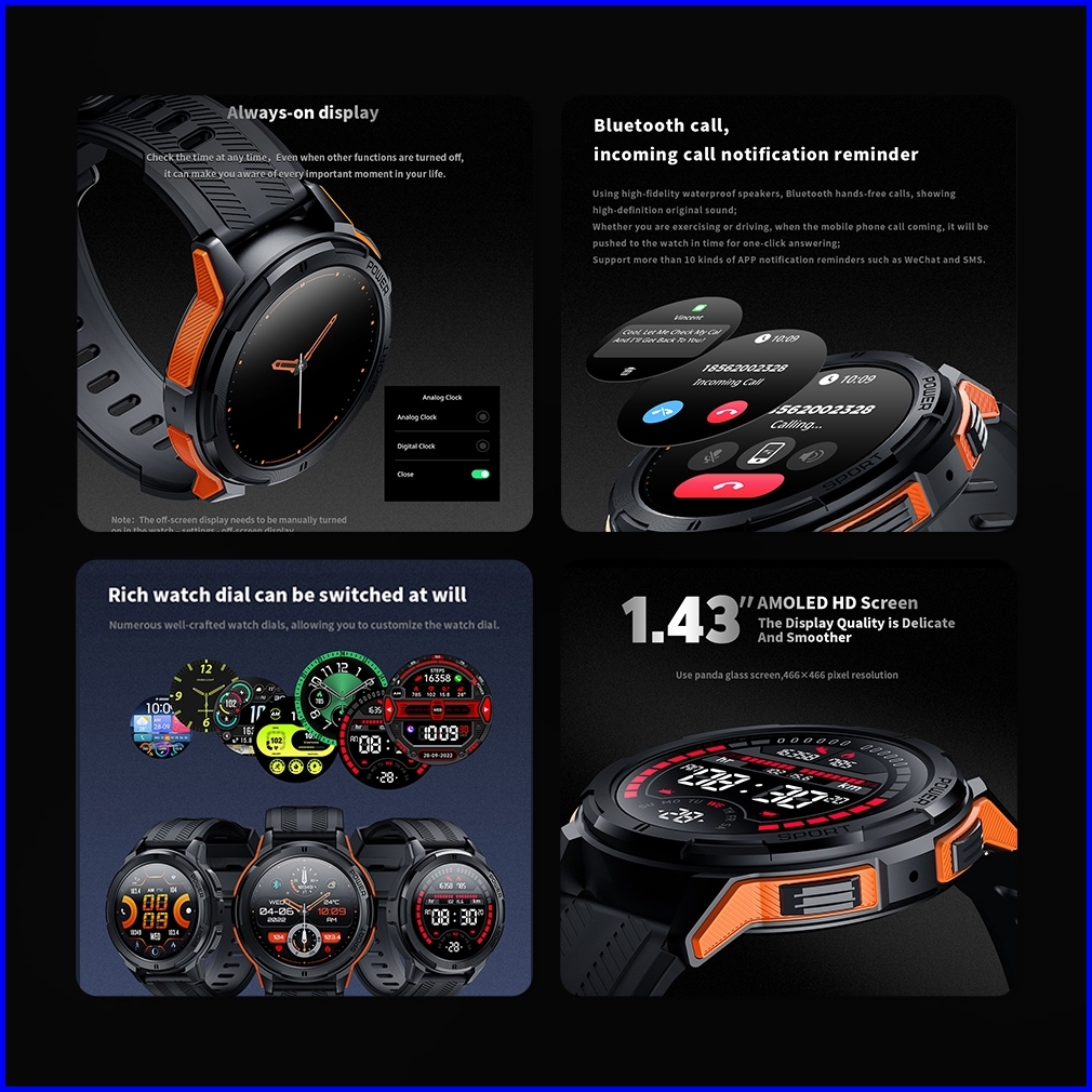 Skmei B73 1.43-inch Amoled Jam Tangan Smartwatch Pria Olahraga Watch Anti Air 1atm Android Ios Jam Tangan Pintar