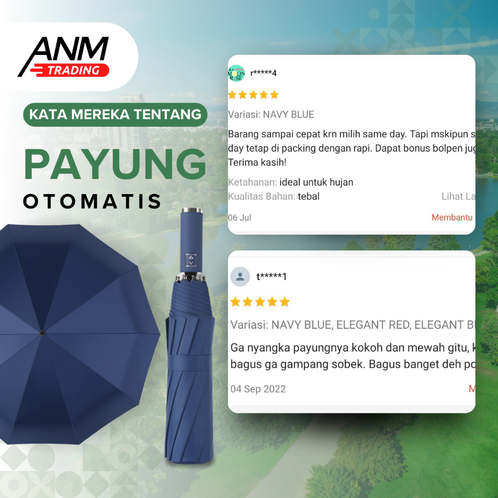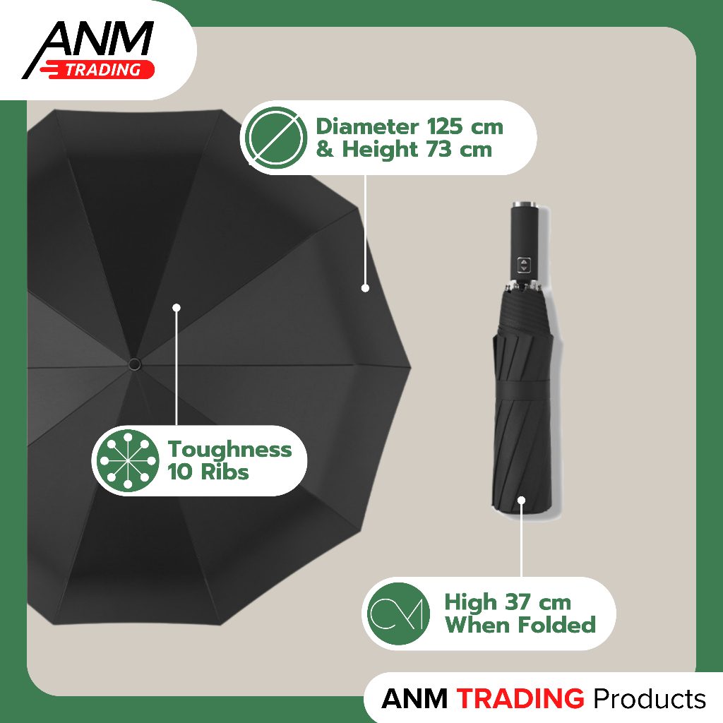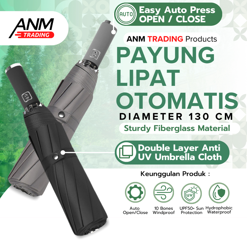 [ANM TRADING] Payung Lipat Otomatis Jumbo 130cm 10 Bones Anti UV SPF50+ Premium