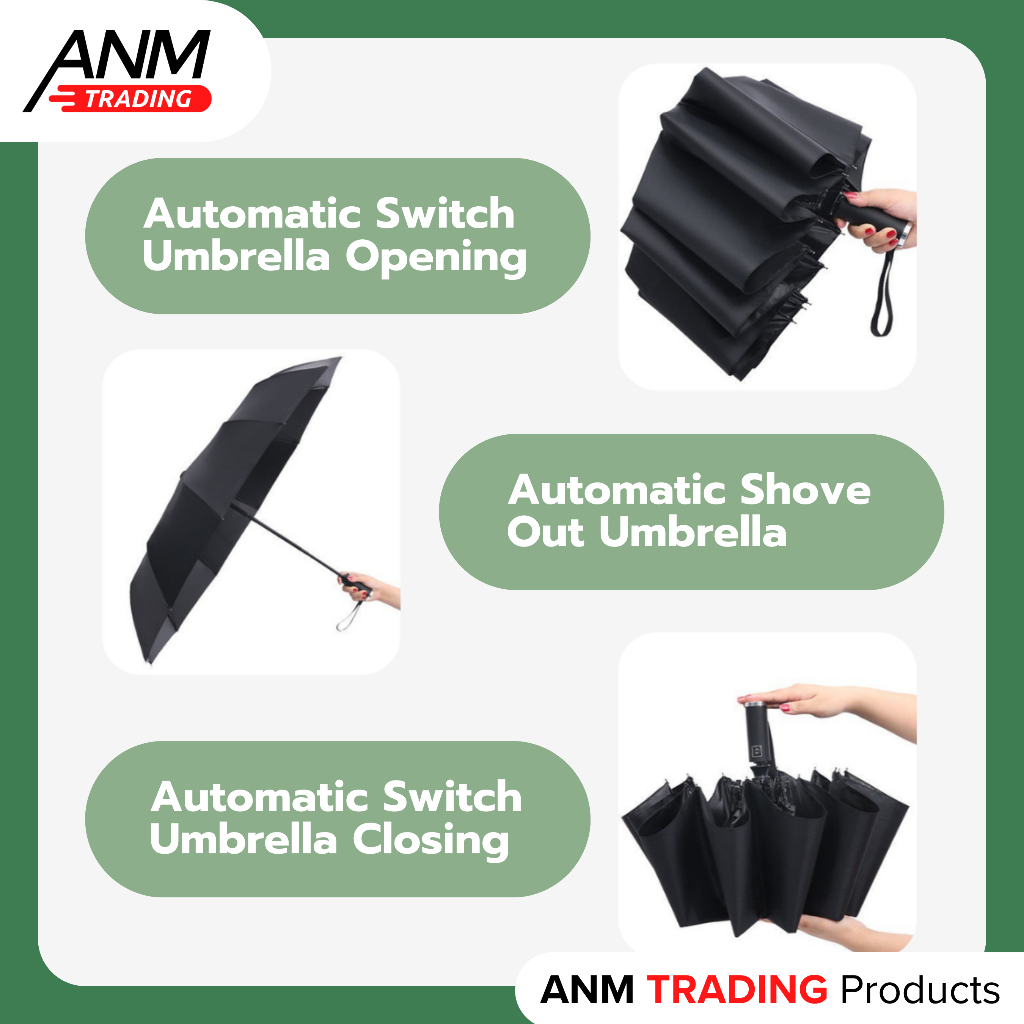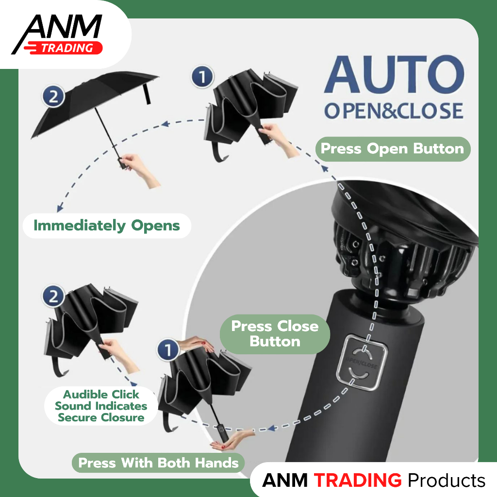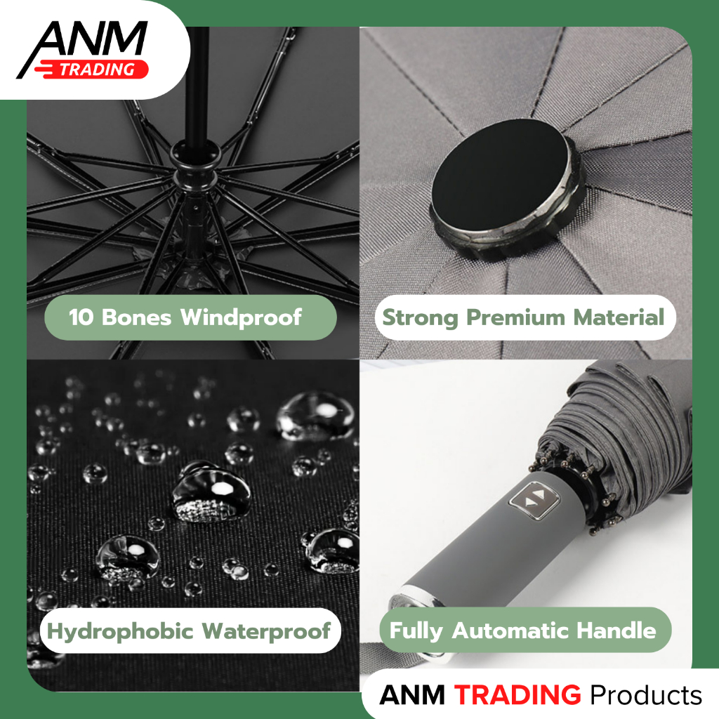 [ANM TRADING] Payung Lipat Otomatis Jumbo 130cm 10 Bones Anti UV SPF50+ Premium