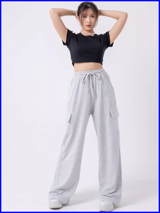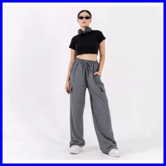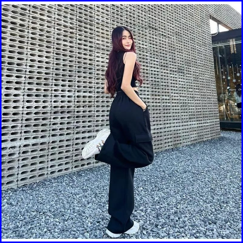 Yonna Celana Kulot Kargo Panjang Wanita Bahan Babyterry Loose Highwaist Sweatpants Celana Kargo Wanita Gaya Korea Cargo
