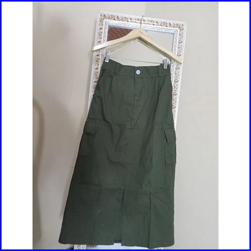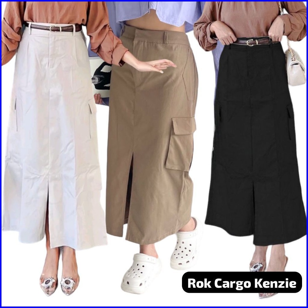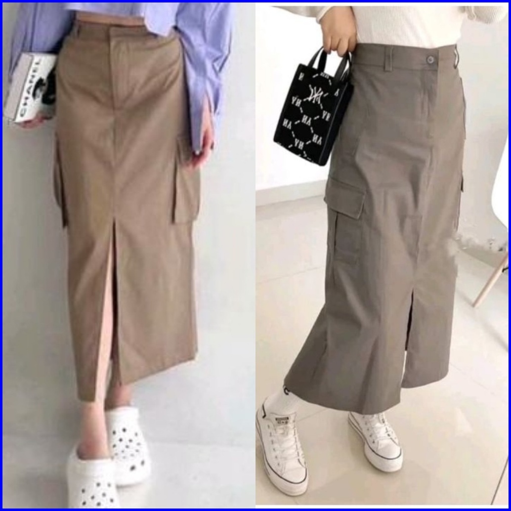 Hargarakyat - Rok Cargo Skirt Span Twill Belah - Rok Kekinian Korean Style Wanita Kekinian Kenzy Slit Skirt