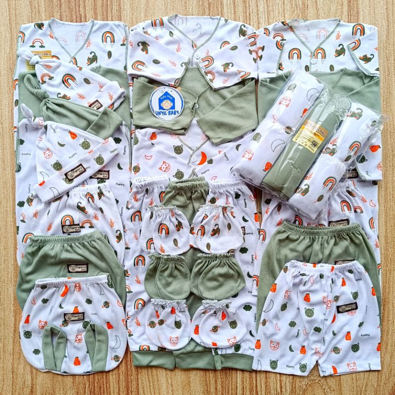UNYIL BABY 30 Pcs Paket Lengkap Baju Bayi Baru Lahir Baju Celana Topi Sarung Tangan Kaki Bedong