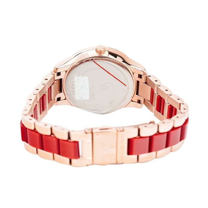 Jam Tangan Wanita Alexandre Christie Multifunction AC 2914 BFBRGRE Red Dial Dual Tone Stainless Steel Strap