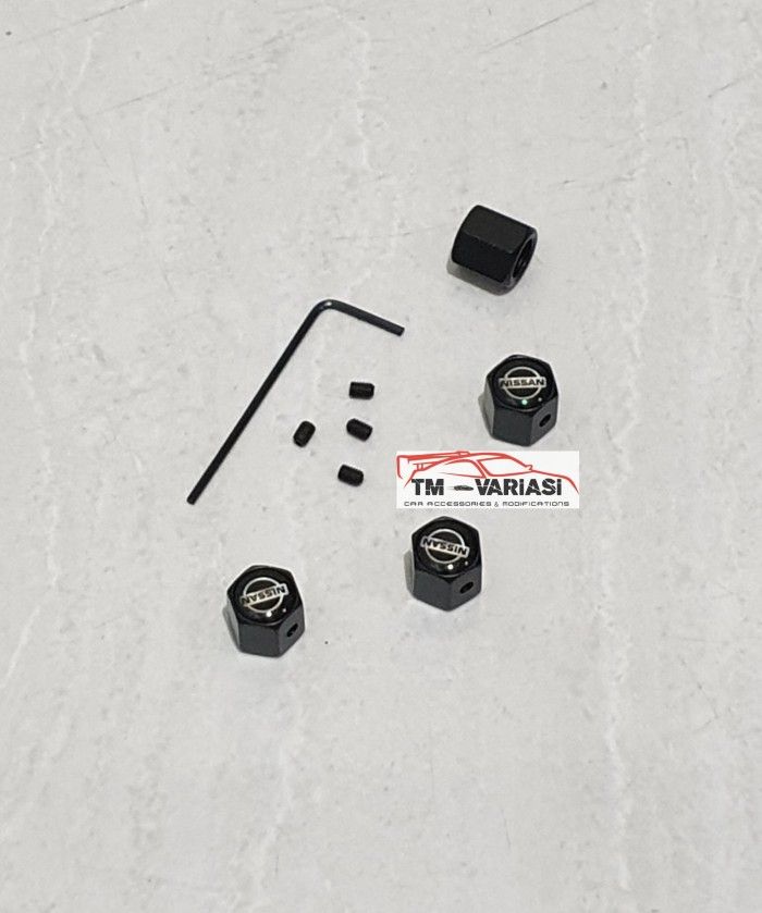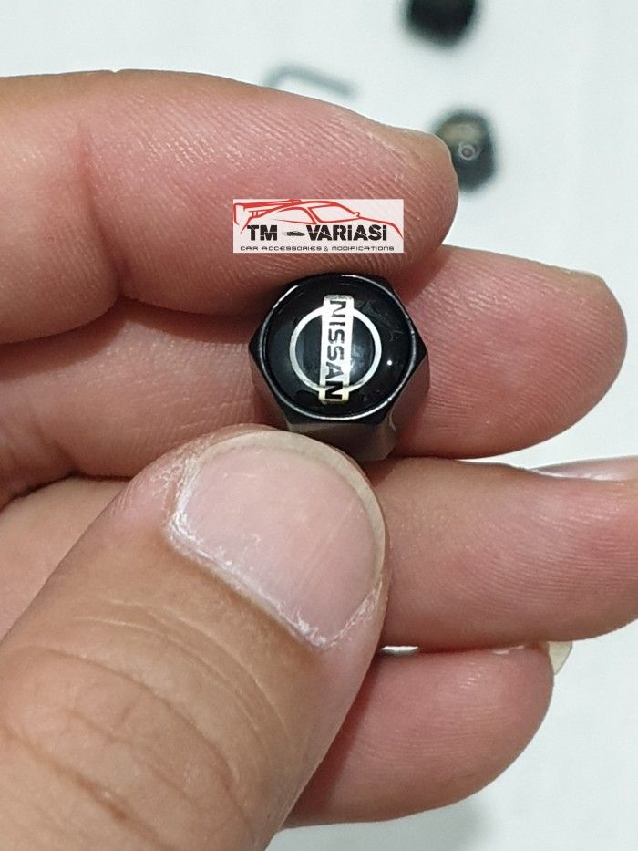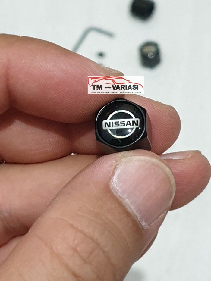 Tutup Pentil Ban Mobil Besi Hitam Logo Motif Nissan Dengan Kunci L