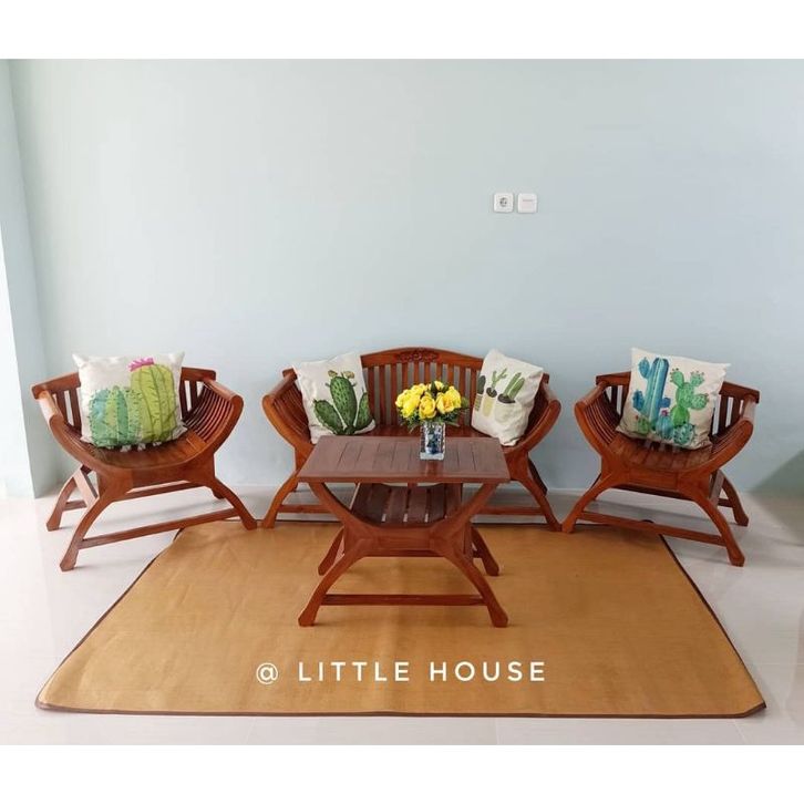 Grosir Kursi Teras Minimalis yuyu Set Kursi 2 bangku 1+ 1 Meja Kayu Jati Solid Jepara opiegaleri aesthetic Elegan