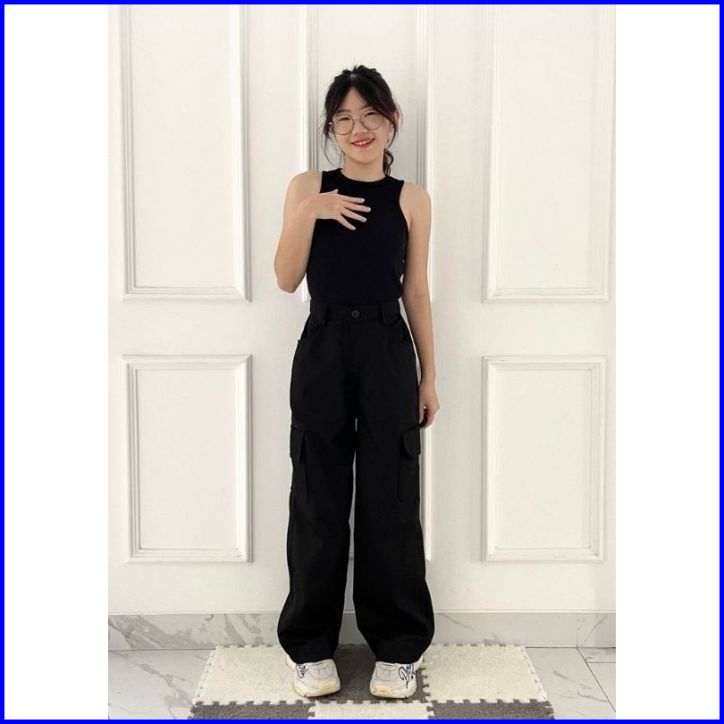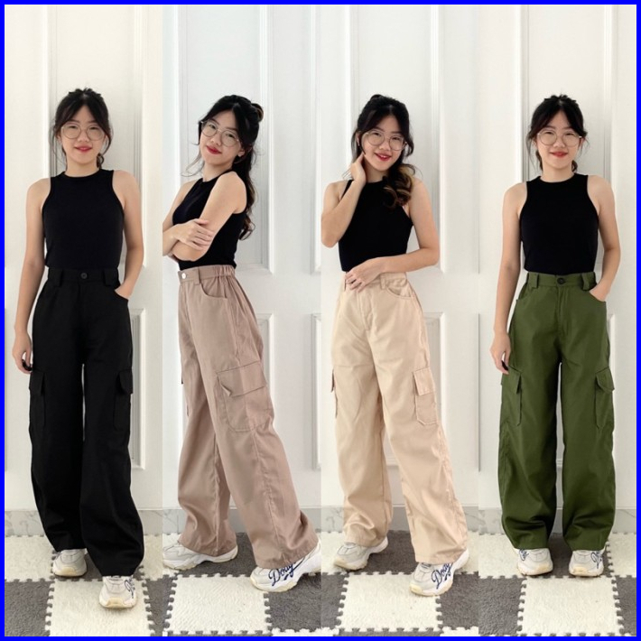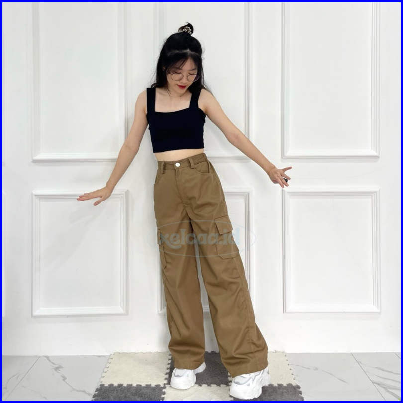 Hr - Cassie Cargo Pants Celana Kargo Drill Kulot Wide Leg Pants