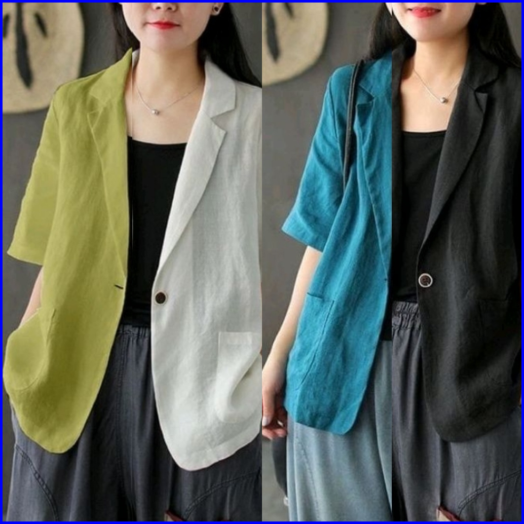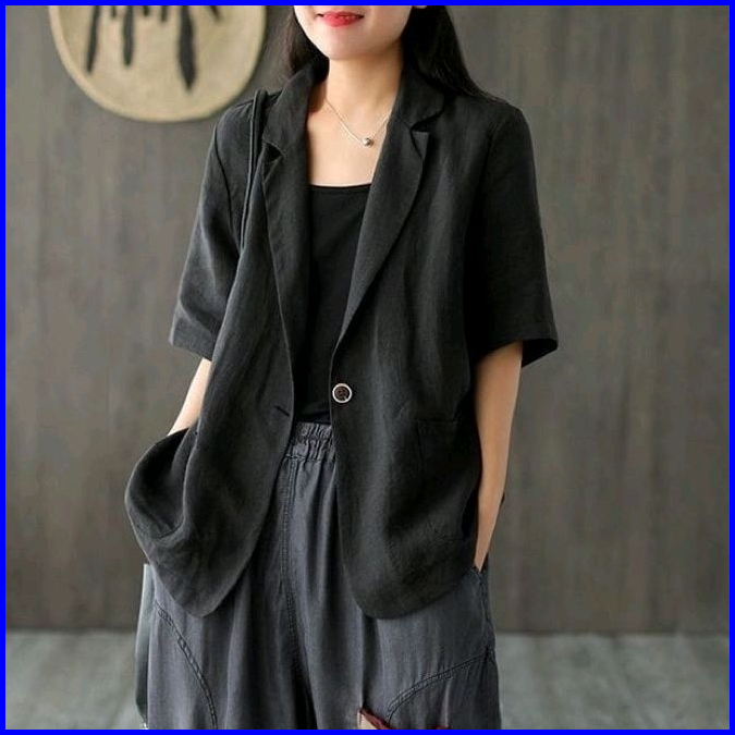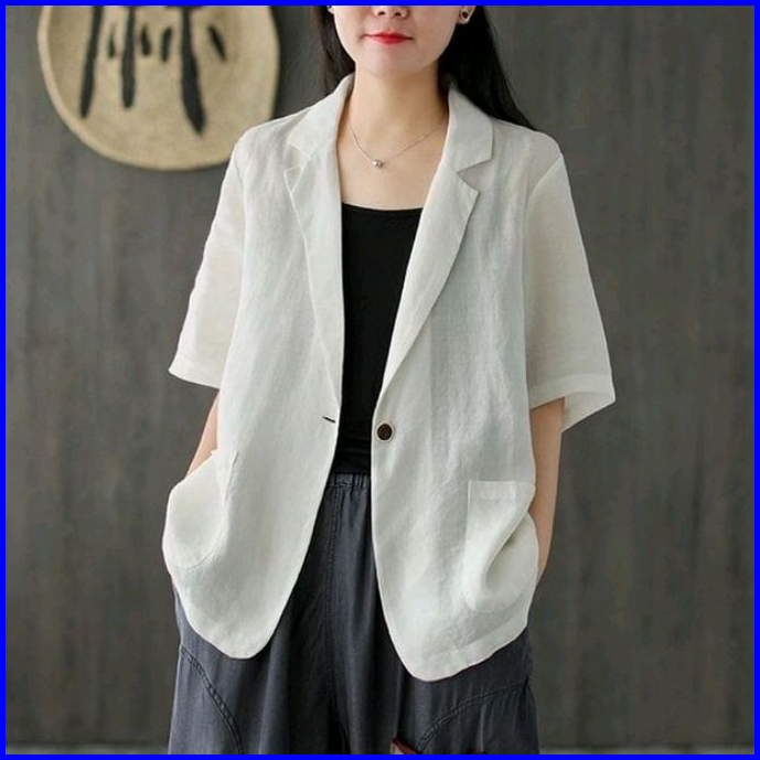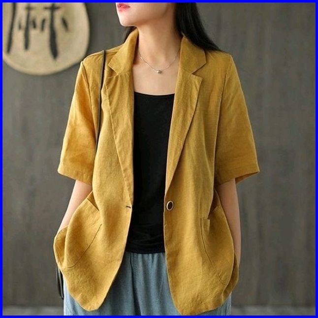 Nancy Narnia Blazer Silvia Blazer Linen Atasan Kemeja Kerja Wanita Korean Style Outfit Office Ootd Work Shirt Kasual
