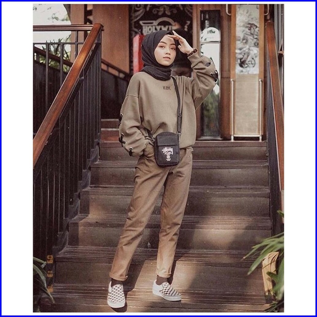 Daily Work Baggy Pants Baggy Pants Bahan American Drill Pinggang Belakang Karet