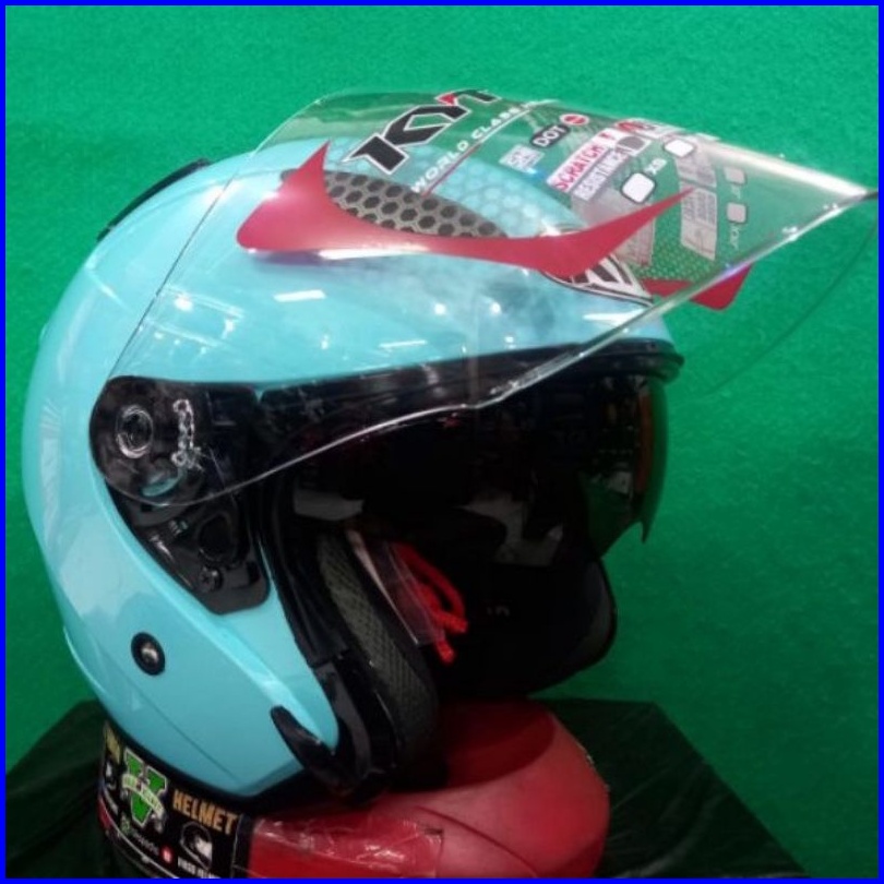 Kyt Helm Galaxy Flat R Solid Aqua Blue Double Visor Termurah