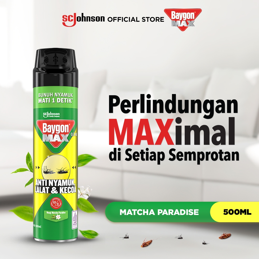 Baygon Max Aerosol Matcha Paradise 500ml - Obat Nyamuk Semprot, Anti Nyamuk Semalaman