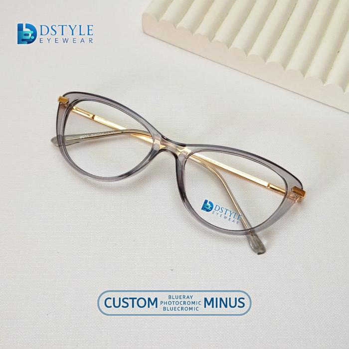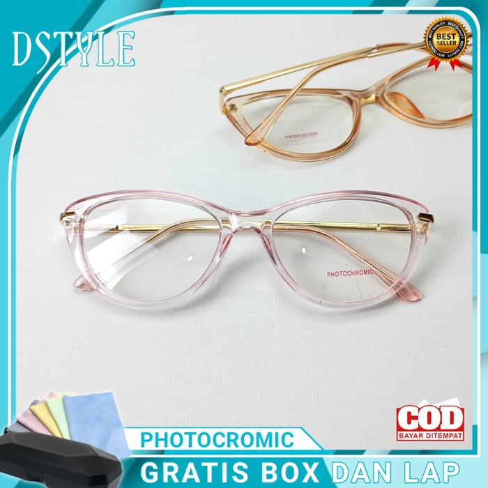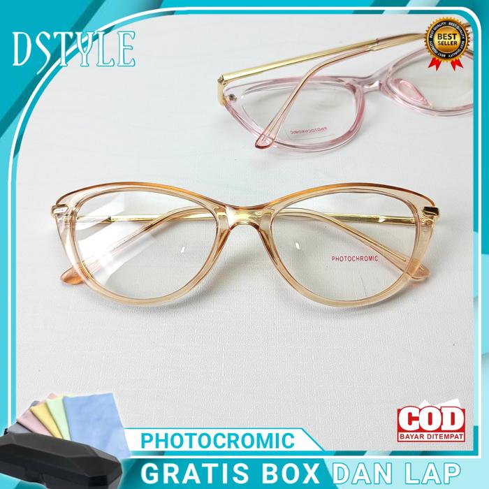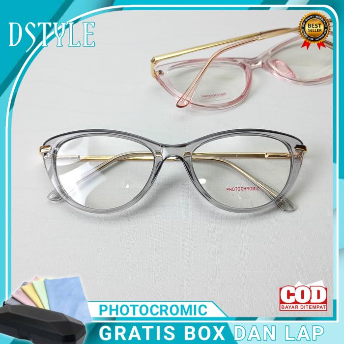 Kacamata Photocromic Minus Bluecromic Cat Eye Lensa Custom Perempuan Biru Blueray Eyewear Frame