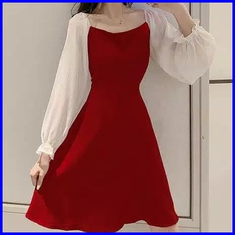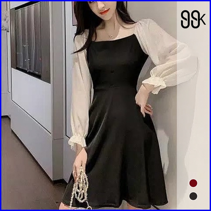 Long Sleeve Party Dress Wanita Lengan Panjang A-line 1153b S M L Xl