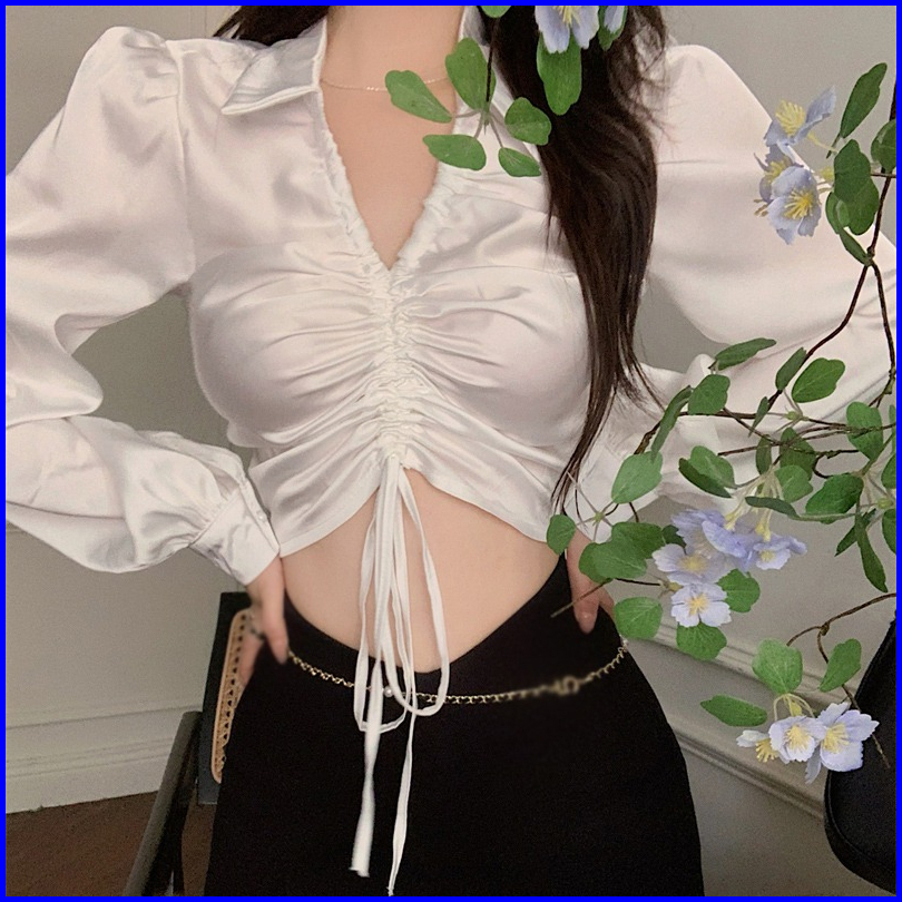 Cropped Blouse With Puff Long Sleeves 1668 S-xl