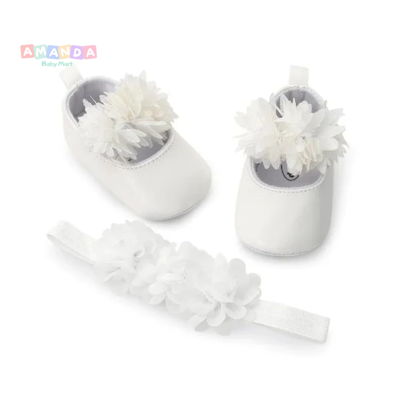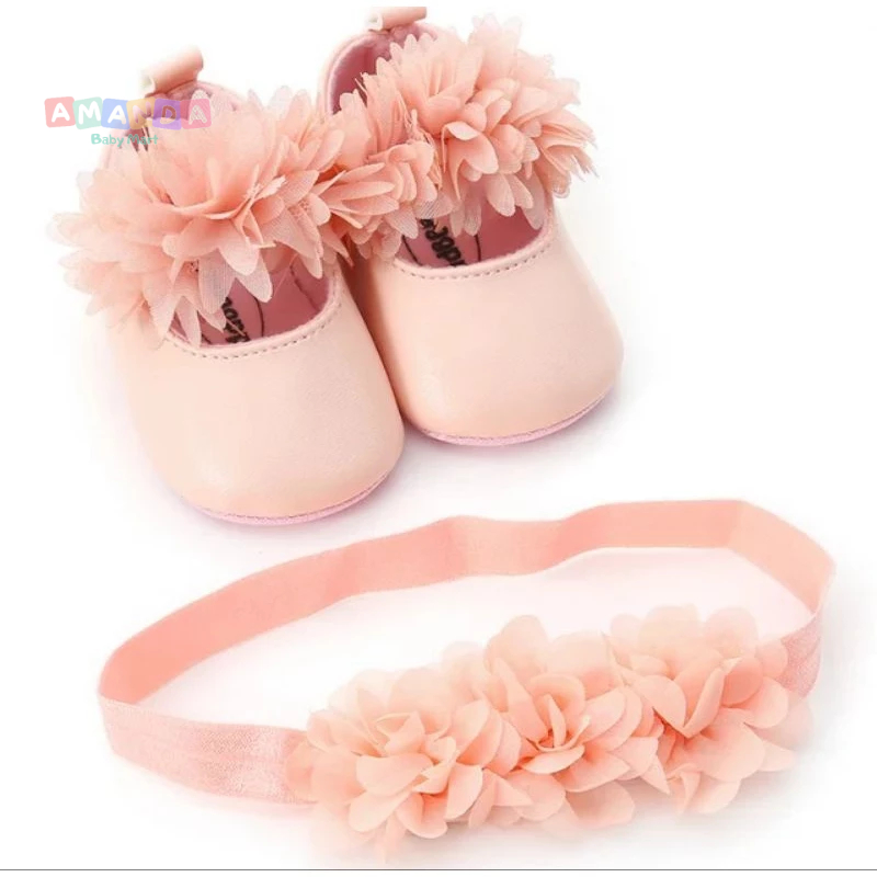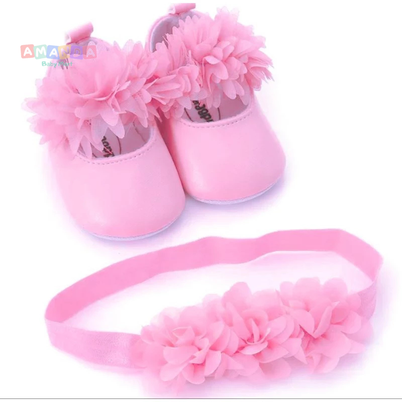 Set Sepatu Bando Anak Bayi Perempuan Usia 0 12 Bulan Terbaru Prewalker Glossy Balita Cewek Flower