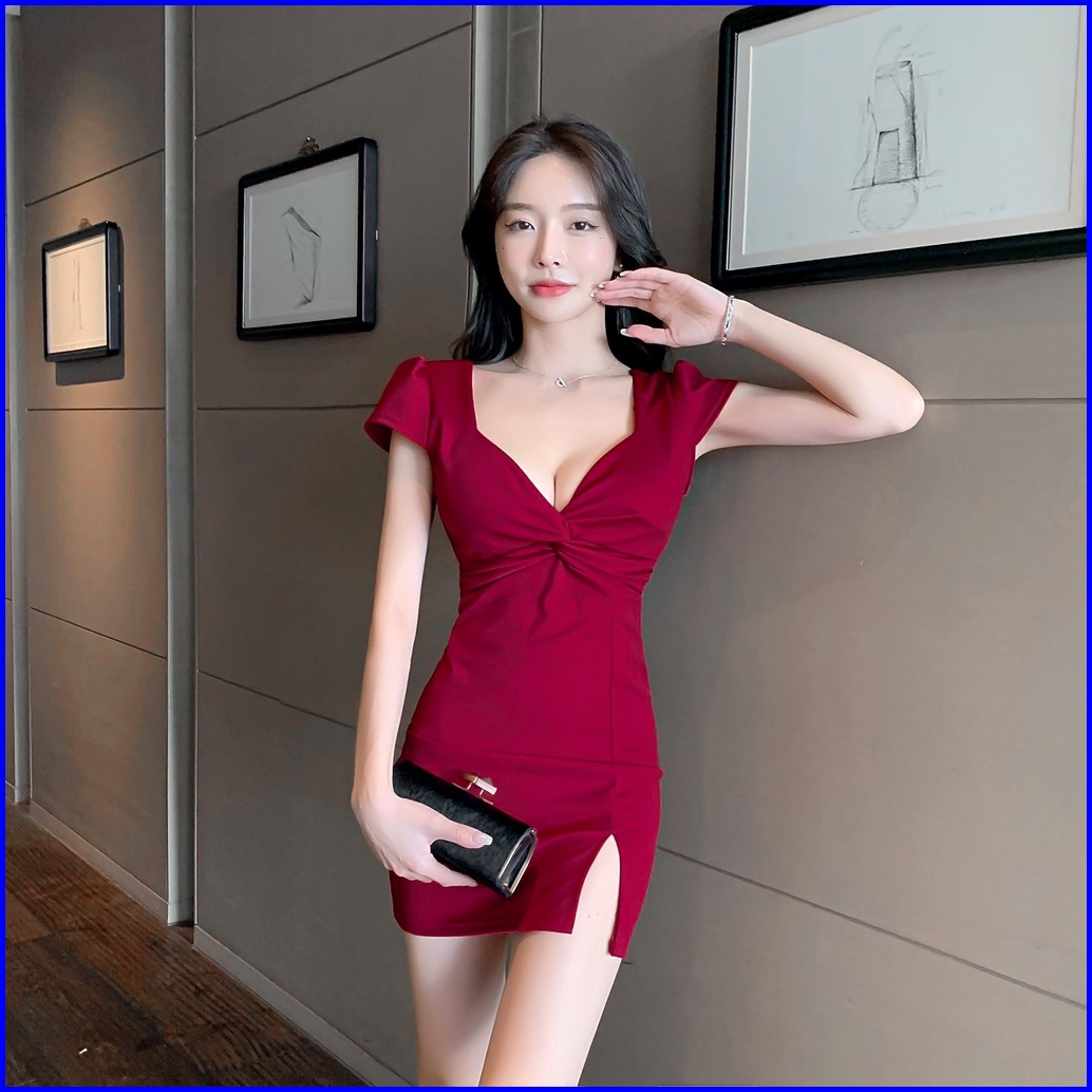 Twist Knot Front Mini Dress With Side Split 1407 Xs-xl