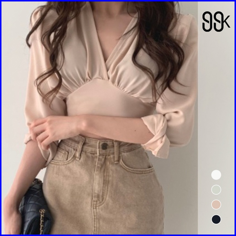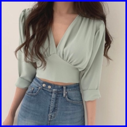 V Neck Long Sleeve Crop Top Blouse 1296 S - Xl