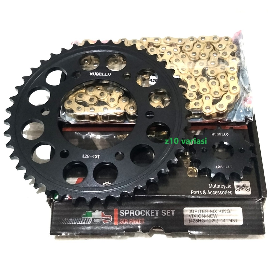gear set vixion new MUGELLO GEAR PAKET SET MX KING VIXION OLD NEW NVL NVA 428HG 14T 43T 122L GEAR DEPAN BELAKANG RANTAI