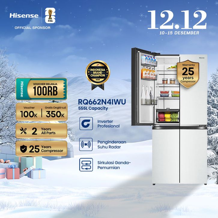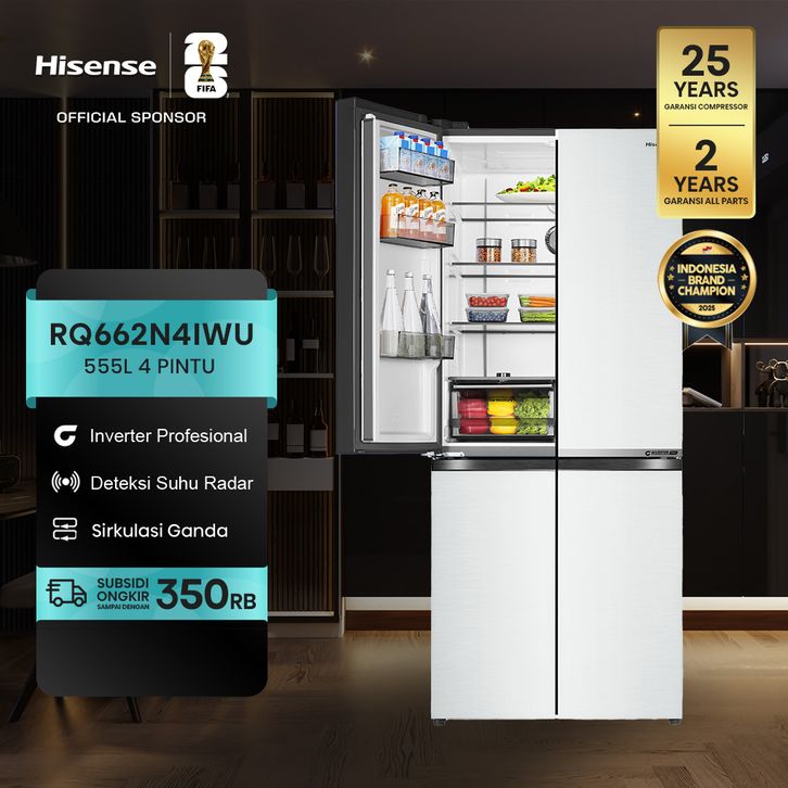 Hisense Kulkas 4 Pintu - RQ662N4IWU - 501L Gross Capacity - Refrigerator - White