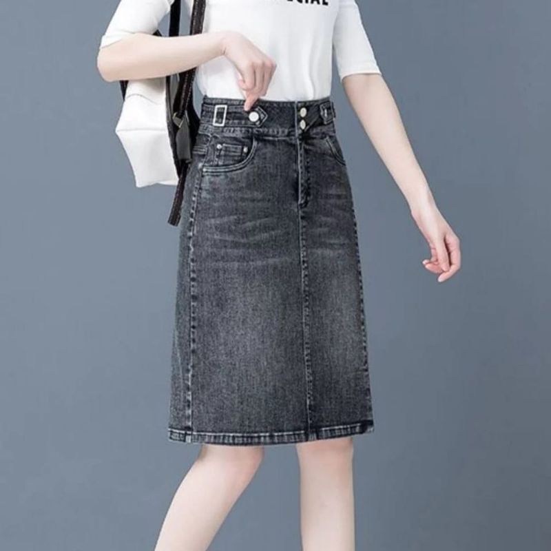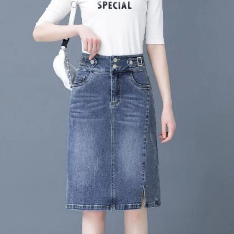Rok ROK JEANS STRETCH PENDEK / BELAH SAMPING / PINGGANG KARET / M-L-XL