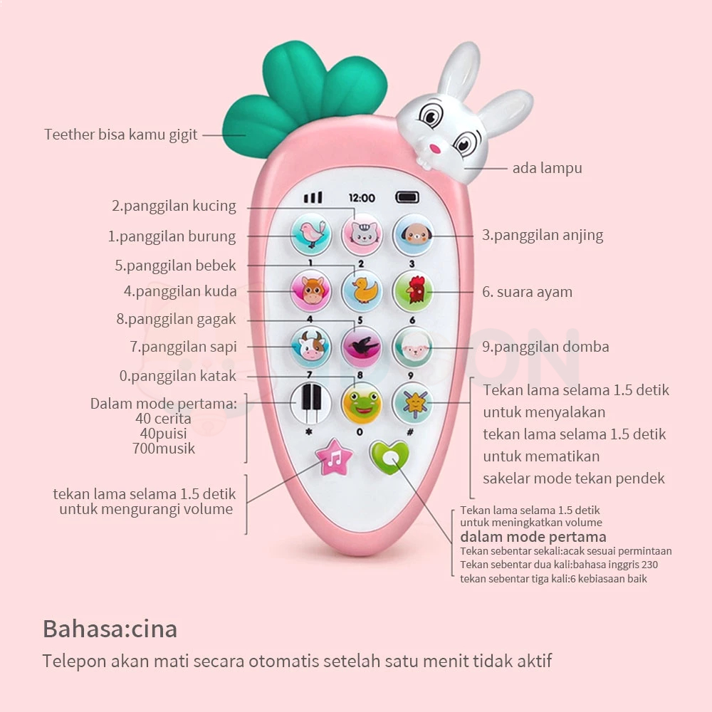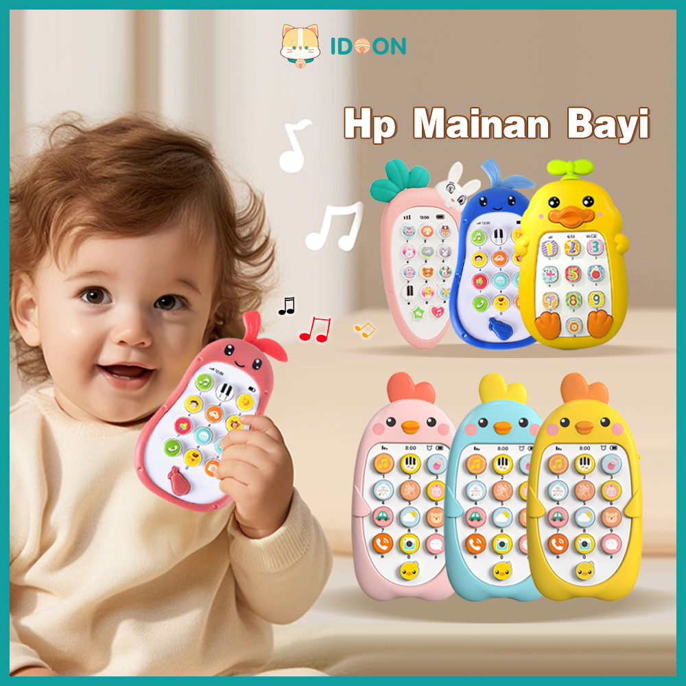 Idoon Telepon Mainan Bayi Silikon Dengan Lampu dan Musik Mainan Gigitan Bayi