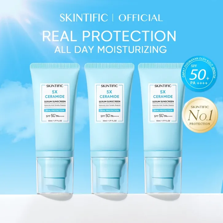 SKINTIFIC - 5X Ceramide Serum Sunscreen SPF 50+ PA++++ 50ml | Melembapkan Hidrasi Lembap