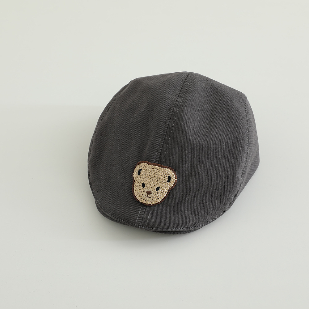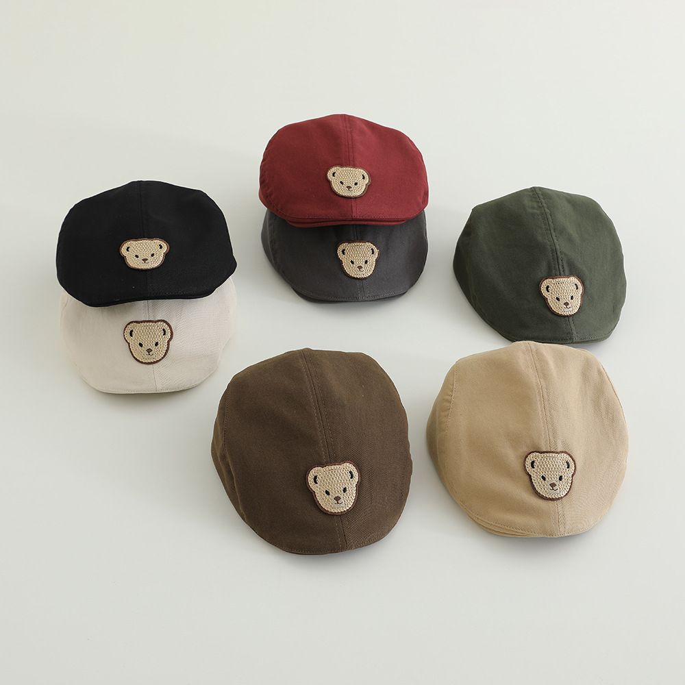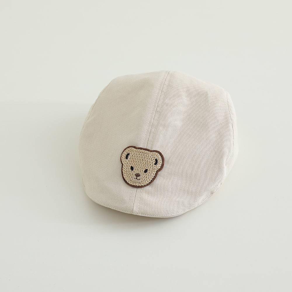 Topi Anak Laki Laki Premium Topi Newsboy Anak Cowok Motif Kepala Bear Cream Topi Anak Balita Cowok Cewek 1-5 Tahun