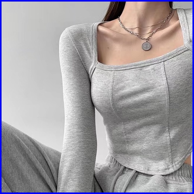 Premium Square Neck Long Sleeve Crop Top 7307 S M L