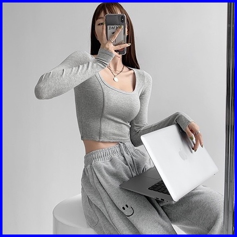 Premium Square Neck Long Sleeve Crop Top T-shirt 7305 S M L