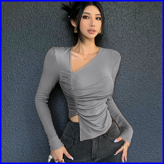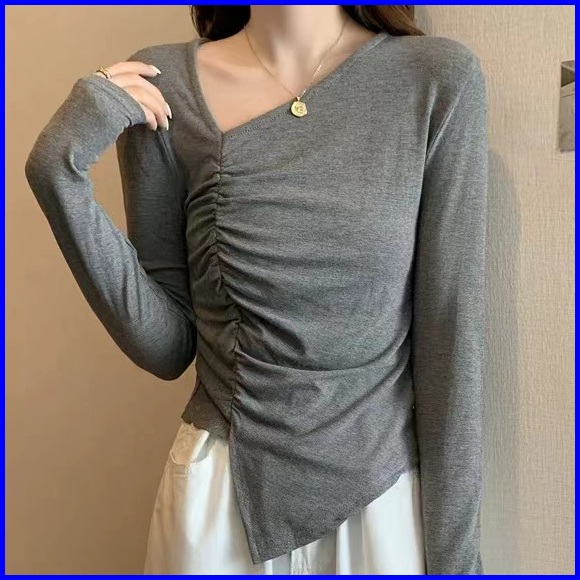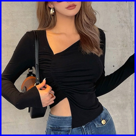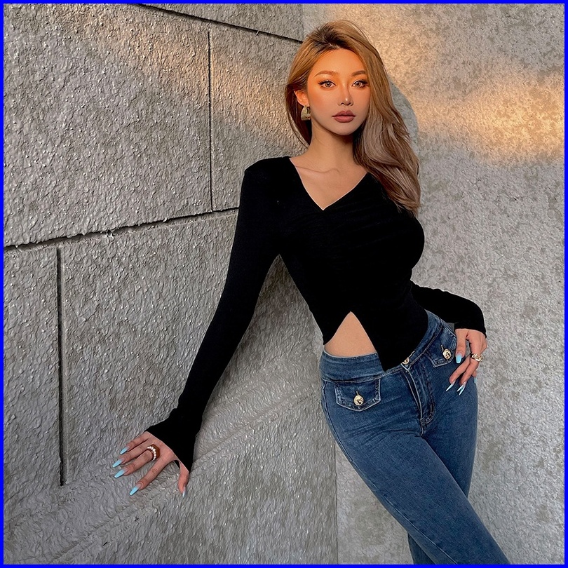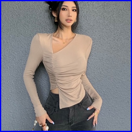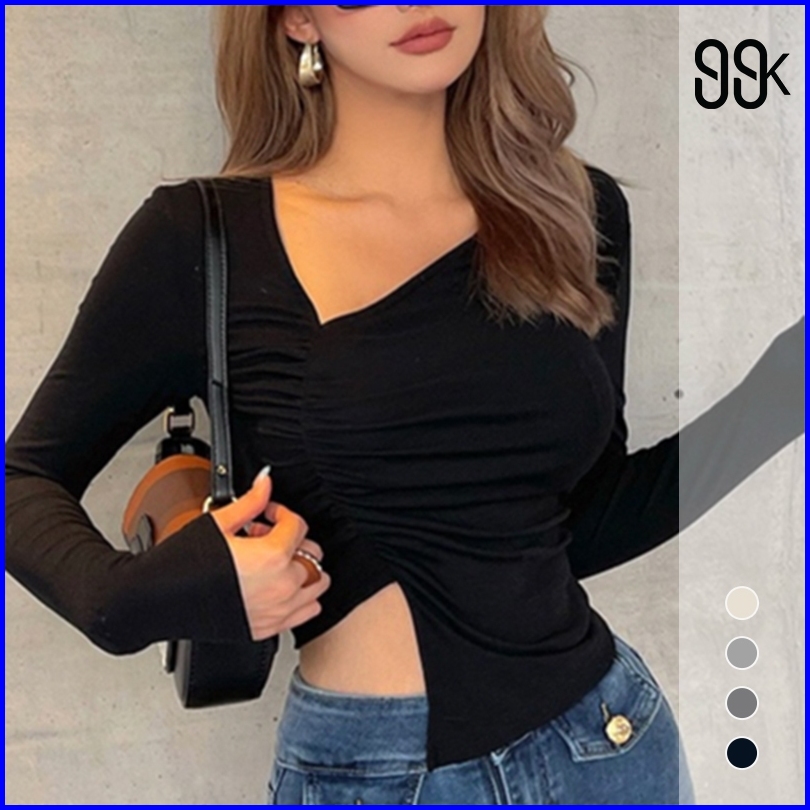99koutlet Crop Top Wanita Kaos Wanita Crop Top Asymmetric Long Sleeve Rib S M L 7294 Atasan Wanita Baju Wanita Casual To