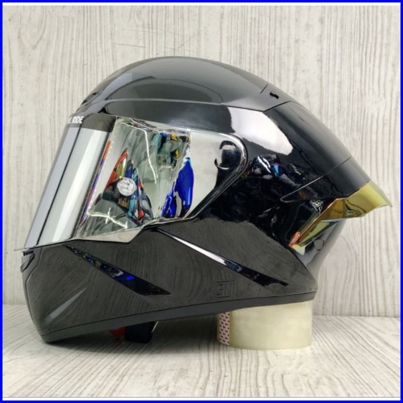 Helm Full Face Kyt Tt Course Solid Black Glossy Paket Ganteng