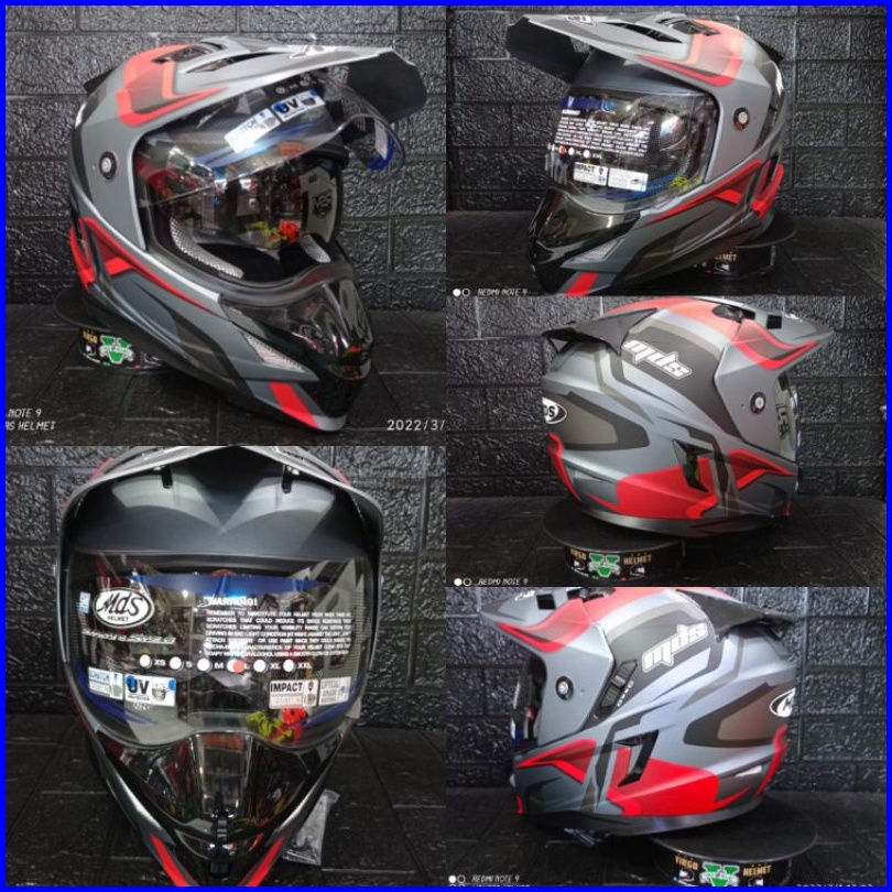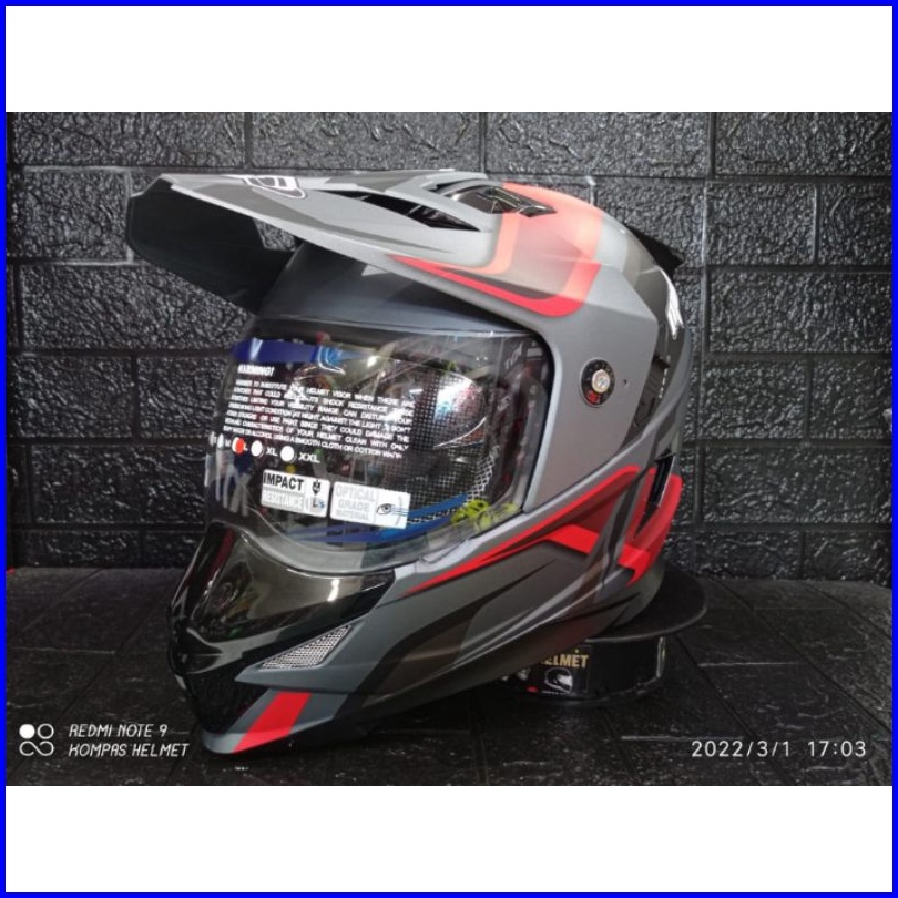 Mds Helm Super Moto Motif Allgrey Matt Red Original Sni Dot Termurah