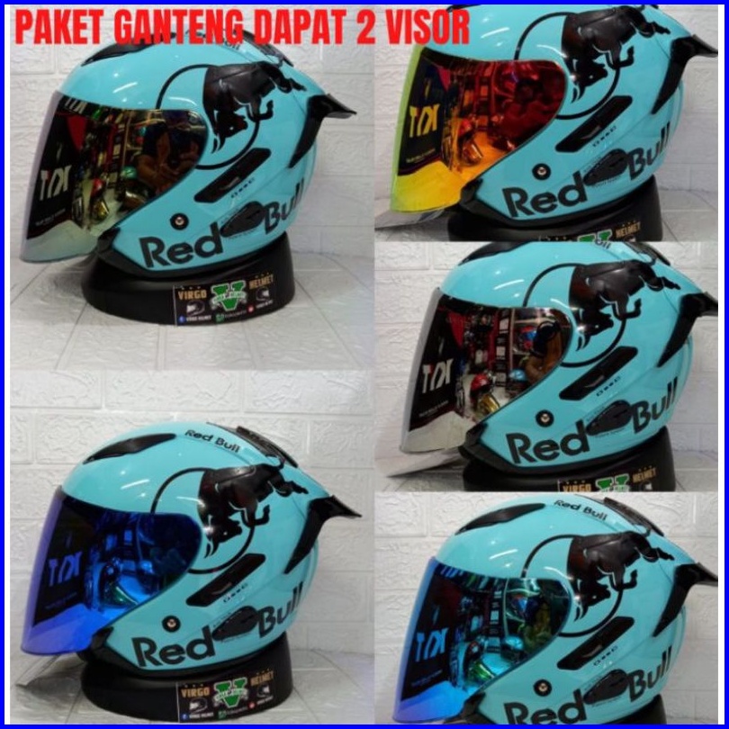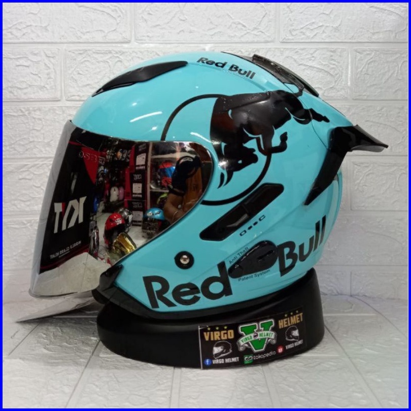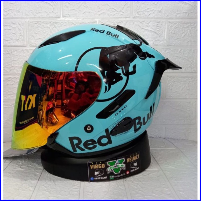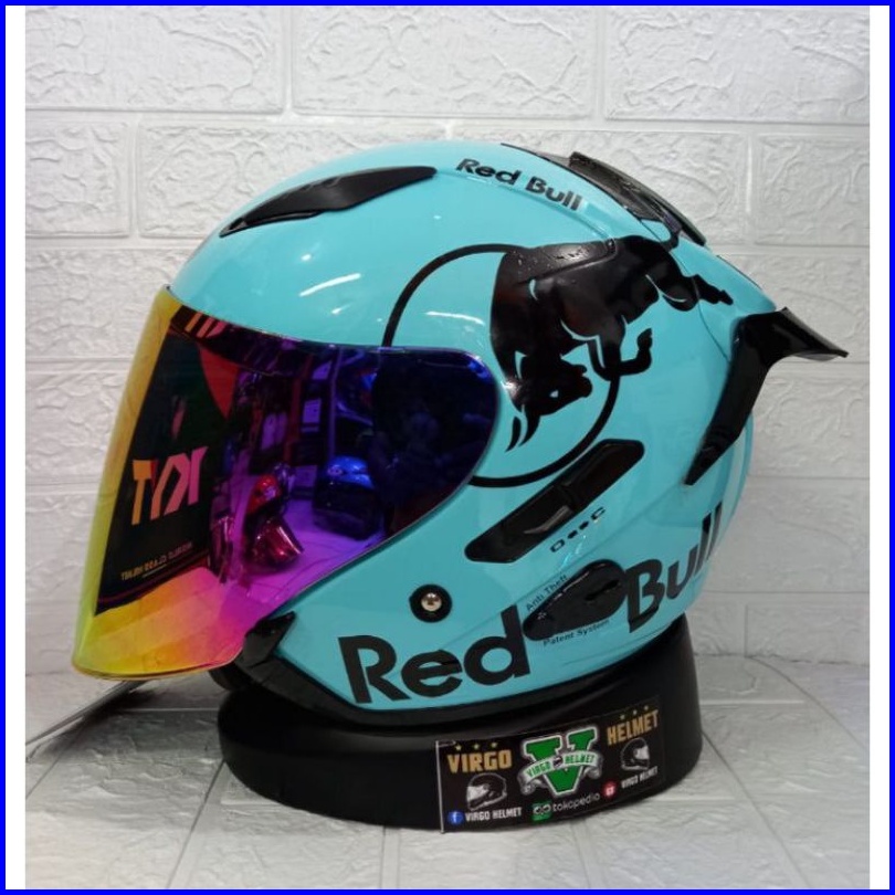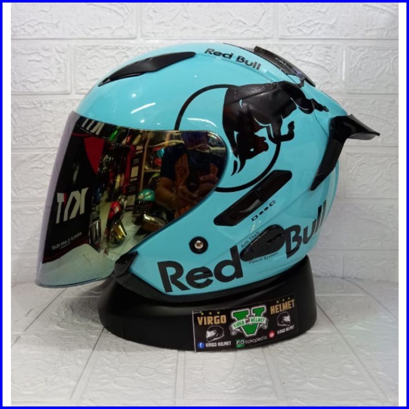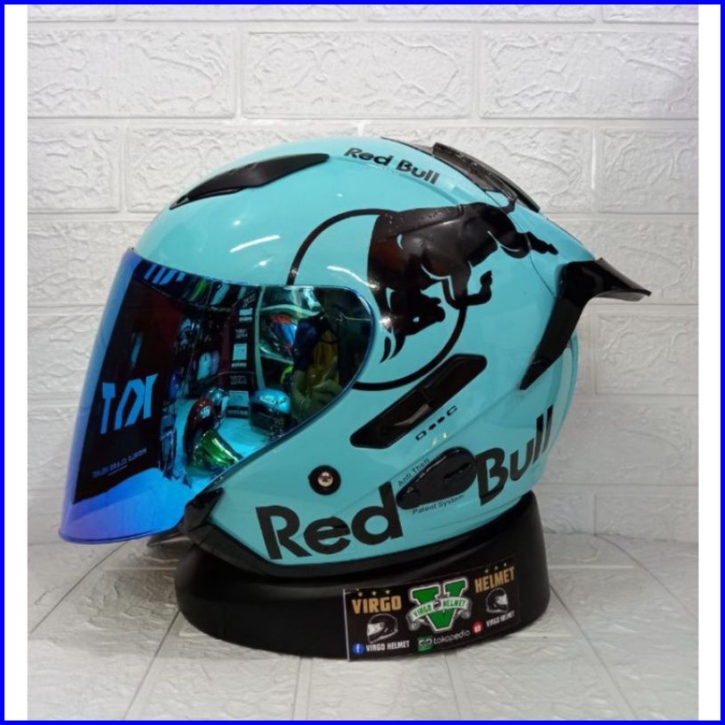 Kyt Helm Galaxy Flat R Solid Aqua Blue Paket Redbull Sni Dot