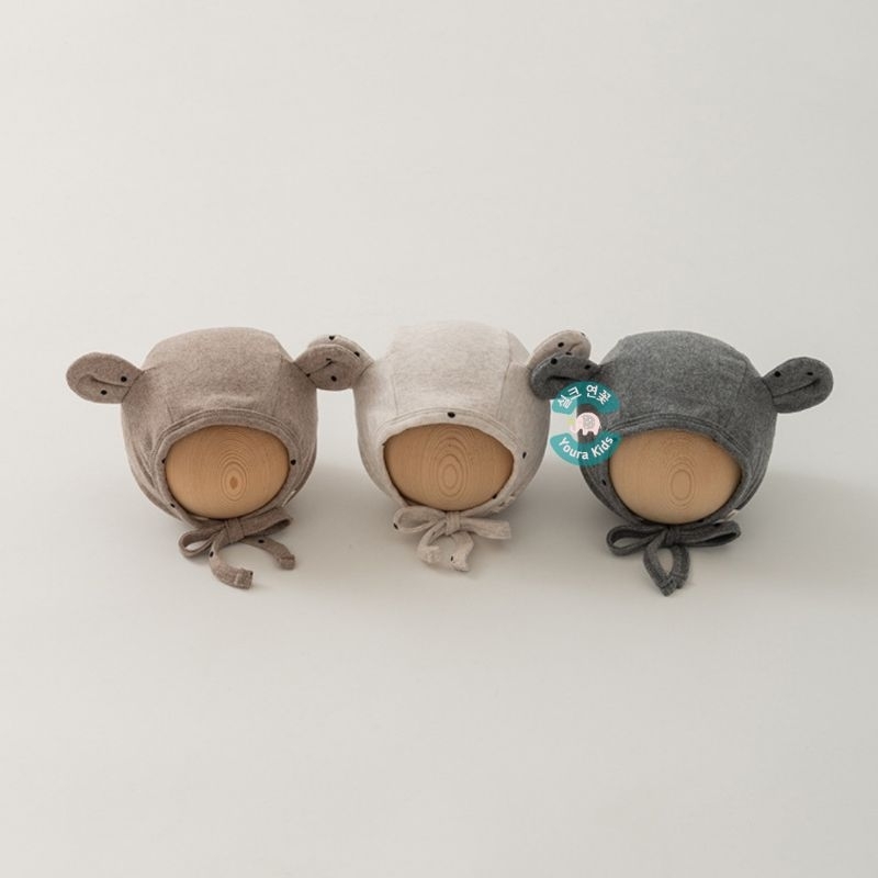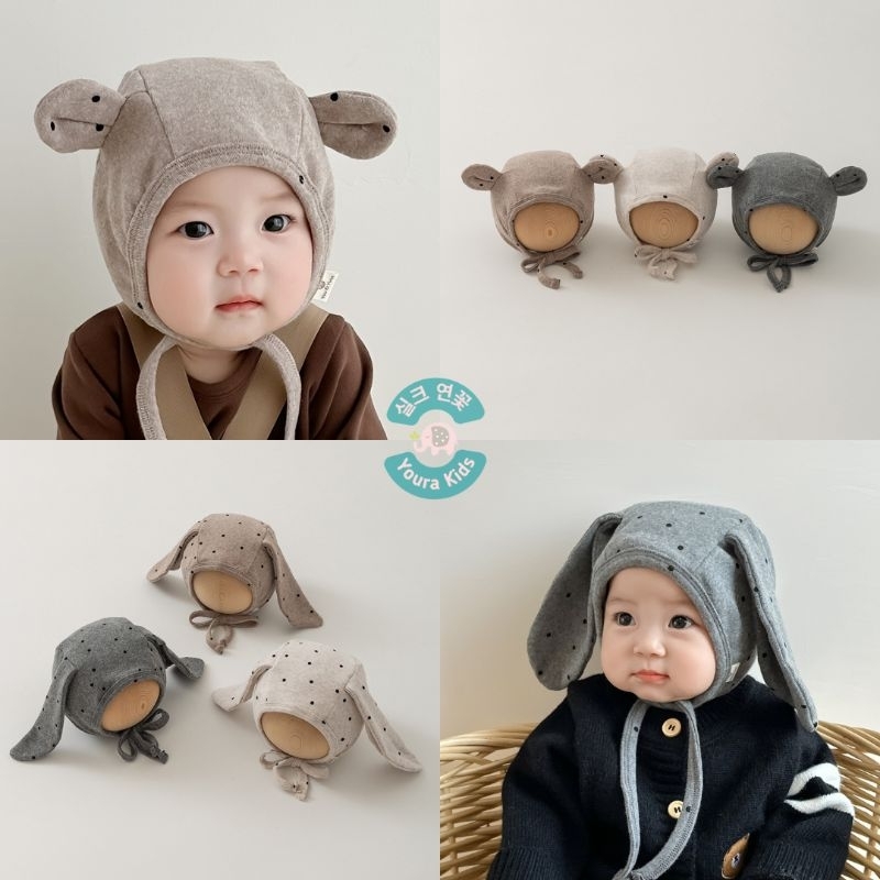 0-18 bln | Topi BONNET Soft Cotton Anak Bayi Batita-POLKADOTS ROUND & LONG EAR-Unisex-New Korean Model