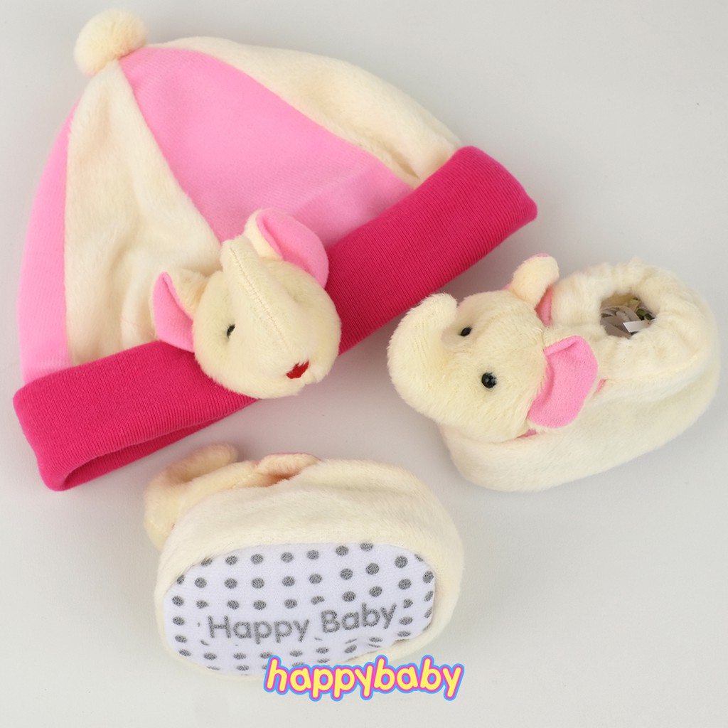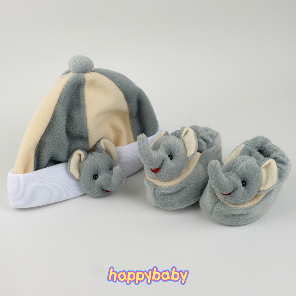 Happy Baby - Paket Sepatu Bayi dan Topi Newborn Karakter LEB-Elephant