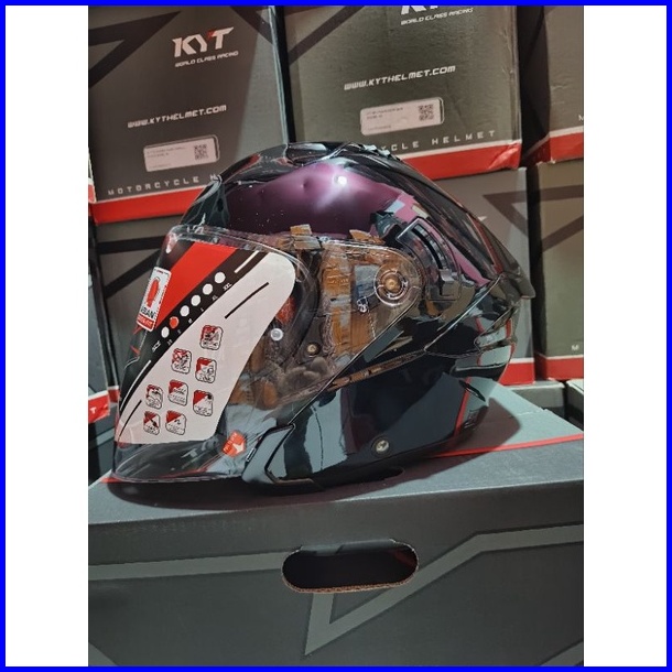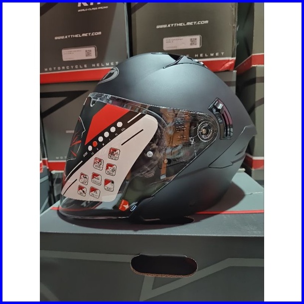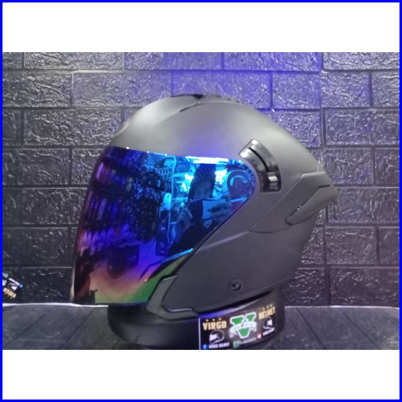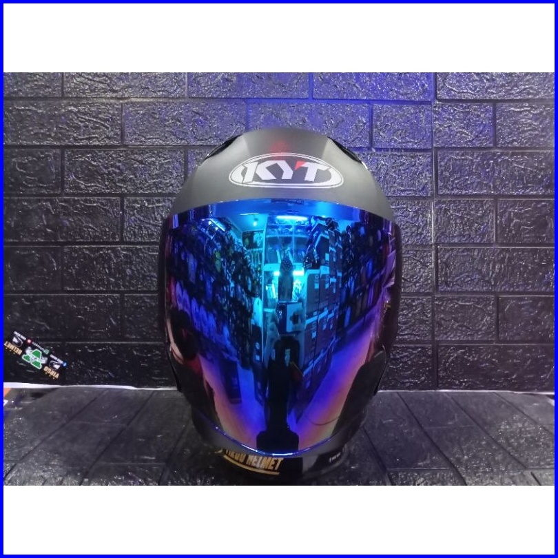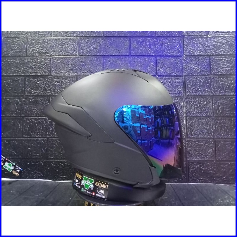 Helm Hallface Kyt Nfj Solid Black Doff Visor Blue Spoiler Ganteng