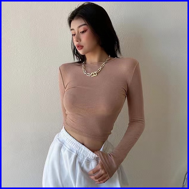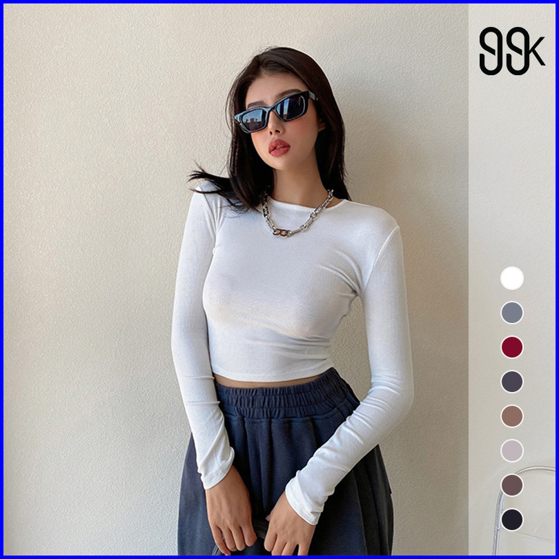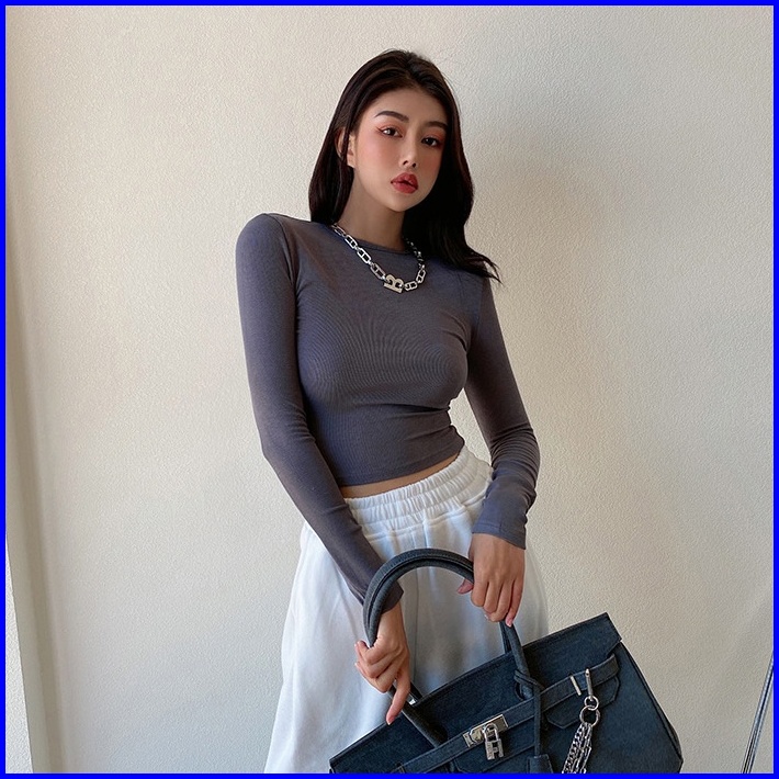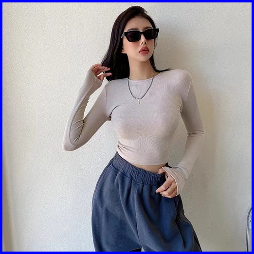 Premiumwomen S Crew Neck Long Sleeve Slim Fit Basic Top 7290 S M L
