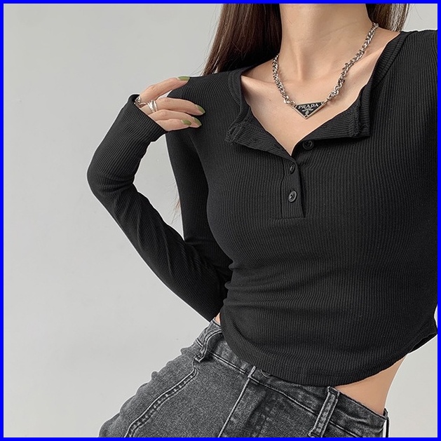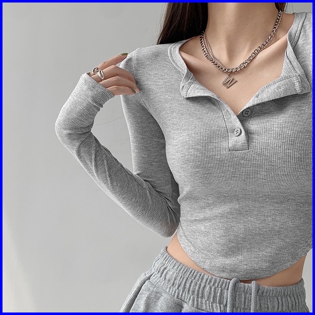 Premium Long Sleeve Ribbed Henley T-shirt 7316 S M L