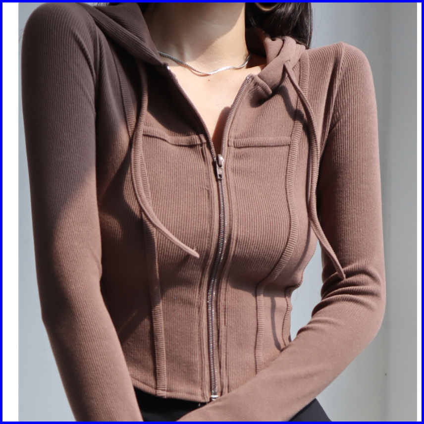 Premium Cropped Drawstring Full Zip Hoodie Sweatshirt 7444 S M L