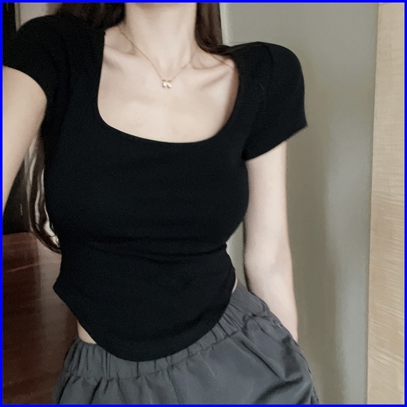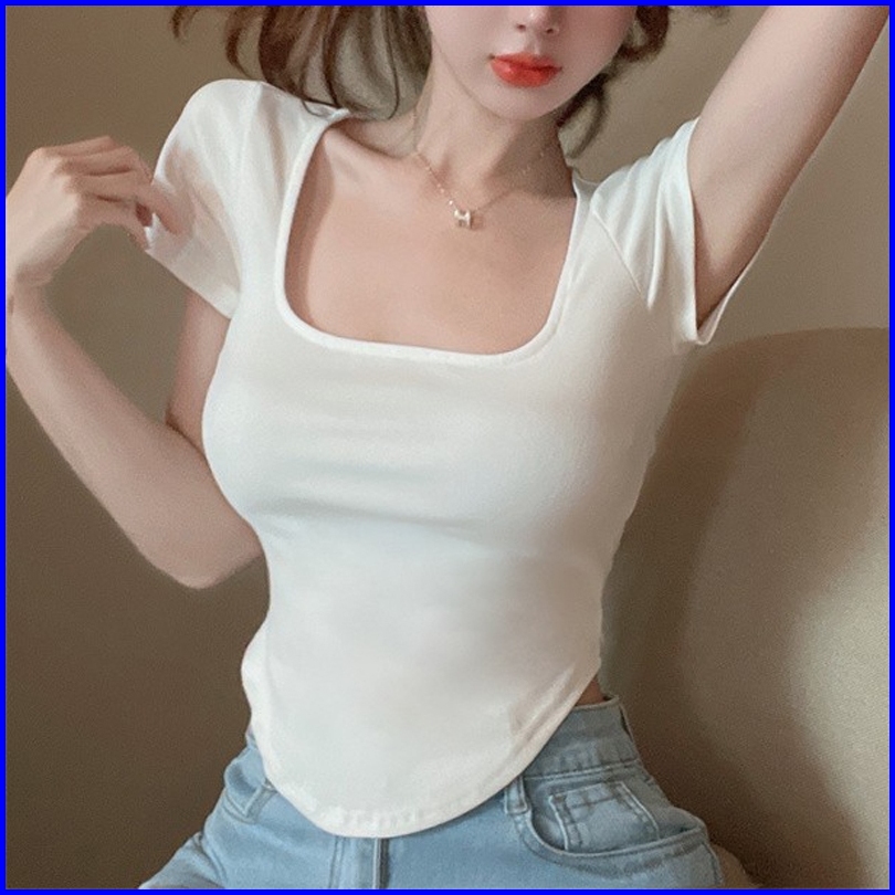 Casual Women S Square Neck Basic Crop Top Shirt 1547 S-xl