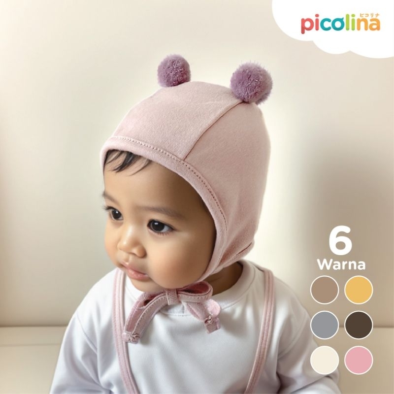 Picolina Topi Bayi Bonnet Pompom Newborn Karakter Telinga Beruang Teddy Bear Usia 3-18 bulan New Korean Style