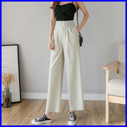 Premium99koutlet Celana Panjang Kulot Casual Wanita Loose Highwaist Wide Leg Button Plain S M L 7269 Women Long Pants Pi