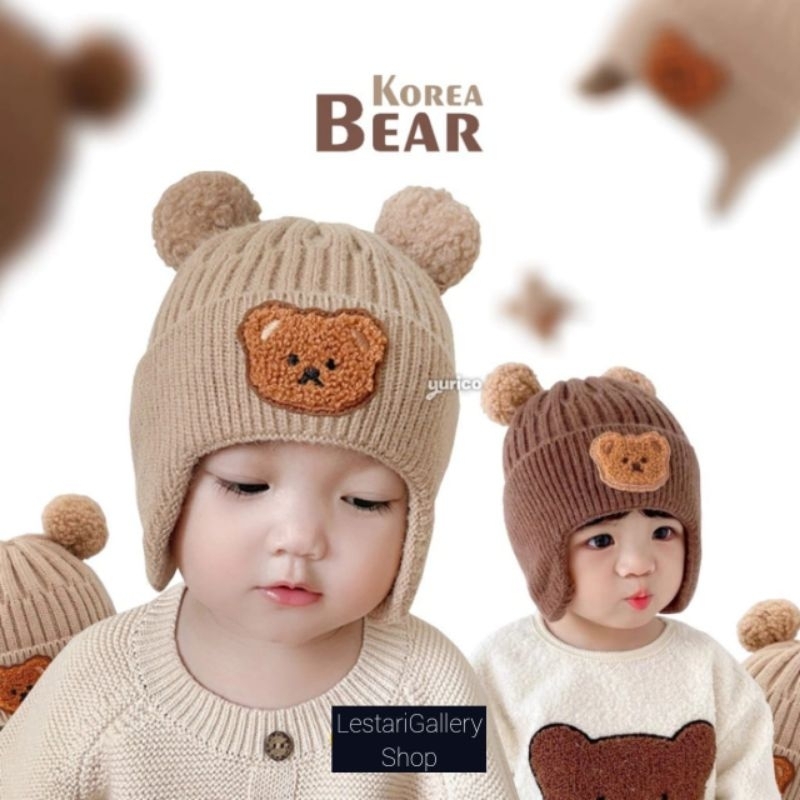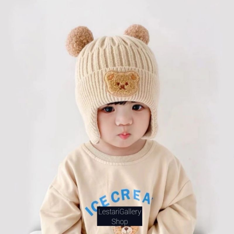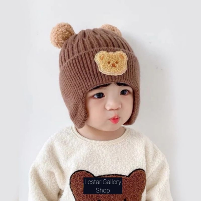 Topi Kupluk Rajut Anak Bayi Bear korea / Topi Beruang Bayi
